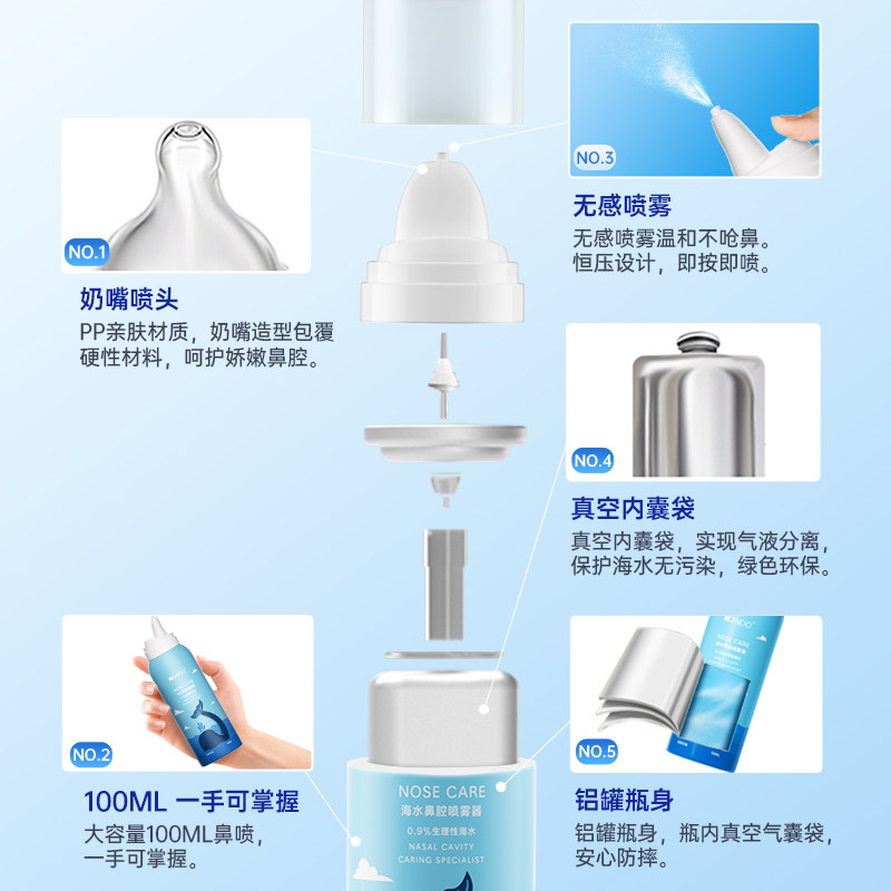 📚 尼诺生理性盐水鼻腔喷雾高渗洗鼻海盐水鼻喷剂儿童鼻炎通鼻洗鼻器
