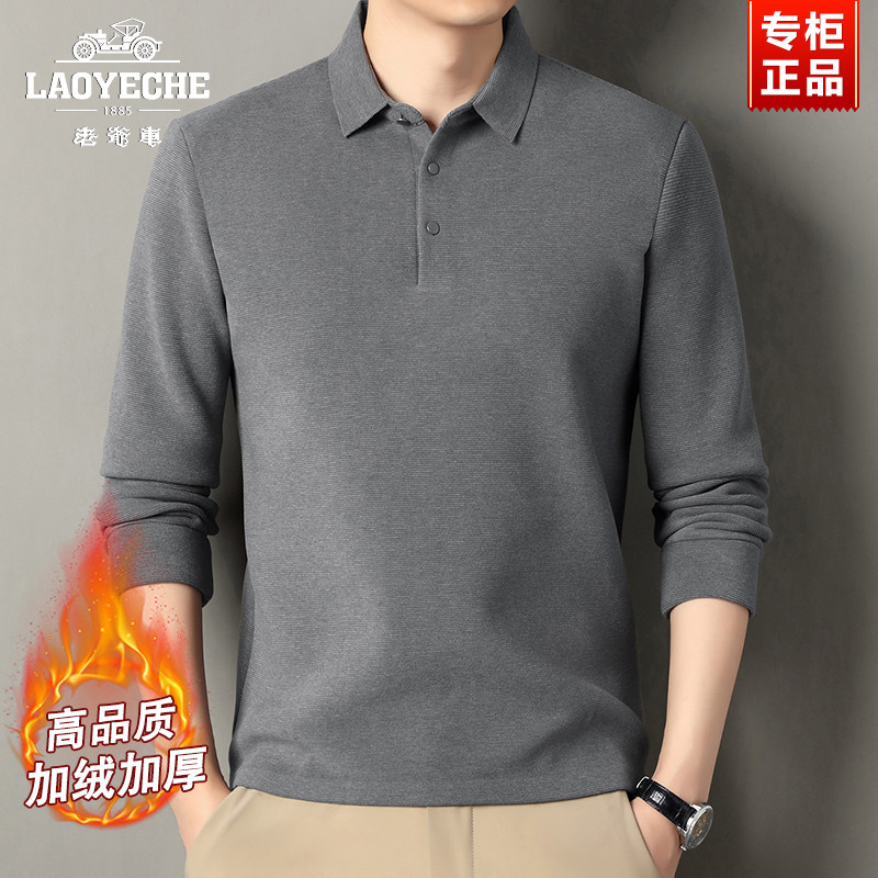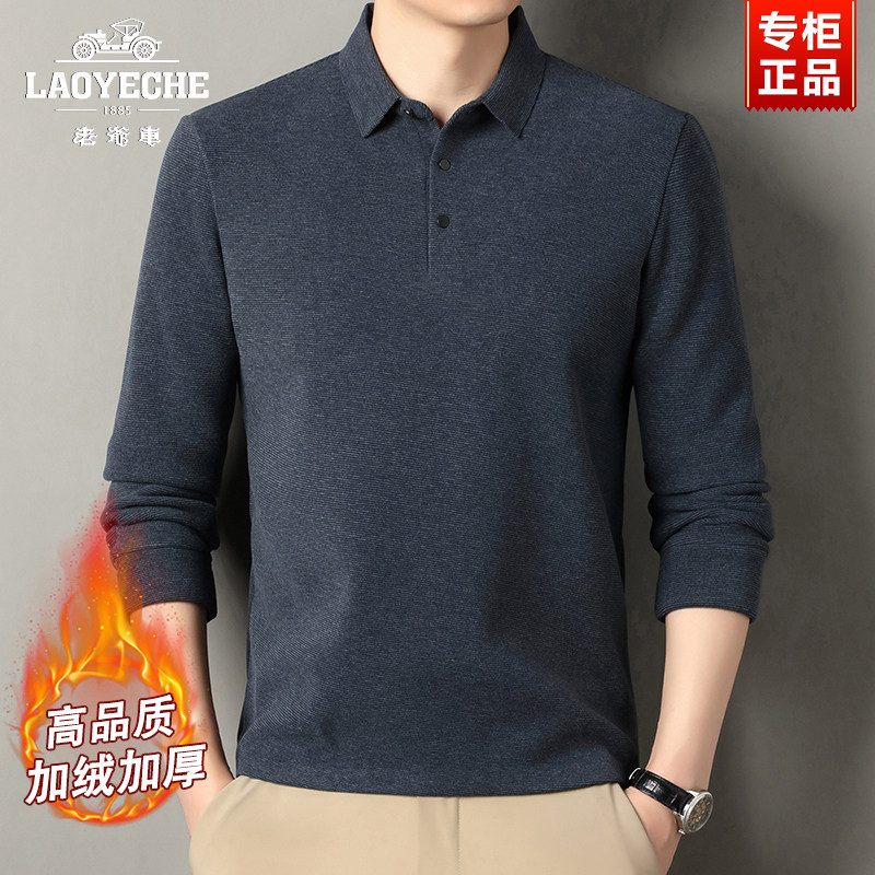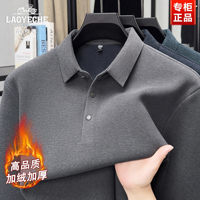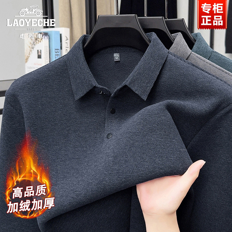 📚 老爷车加绒加厚长袖T恤男士冬季商务翻领POLO衫中年爸爸打底衫男