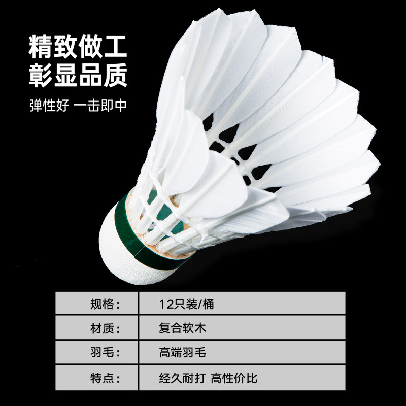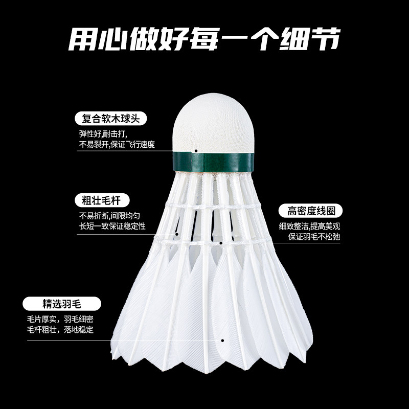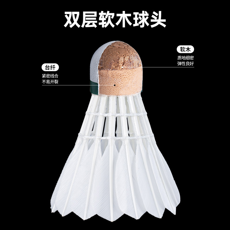 📚 WAVAW反击者飞行稳定耐打鹅毛粗杆拉直12只装羽毛球比赛训练用球