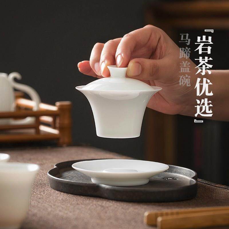 📚 景德镇马蹄盖碗 薄胎70cc小盖碗单个三才盖碗茶杯白瓷陶瓷茶碗