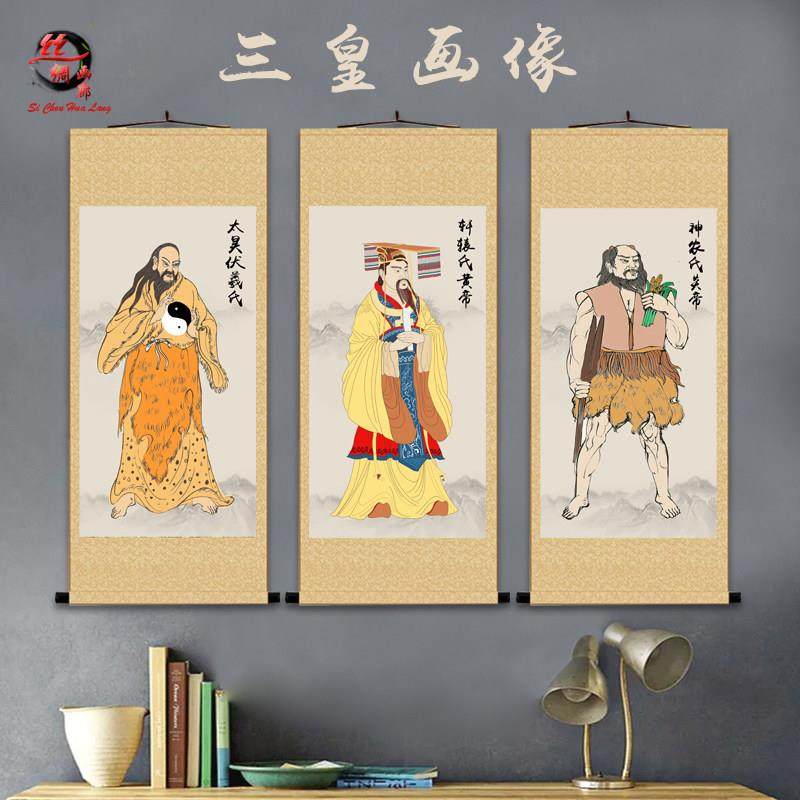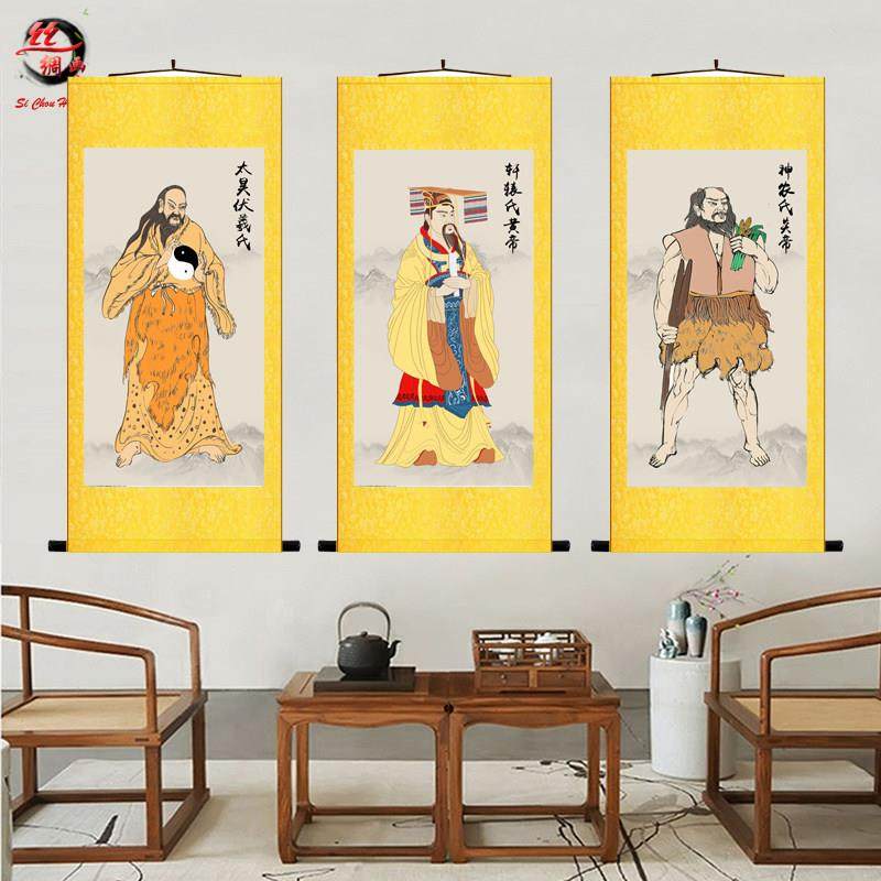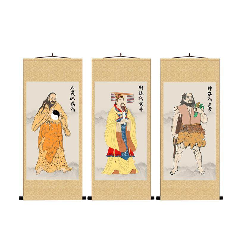 📚 三皇画像轩辕黄帝画像挂画人文始祖伏羲大帝神农氏炎帝养生卷轴画