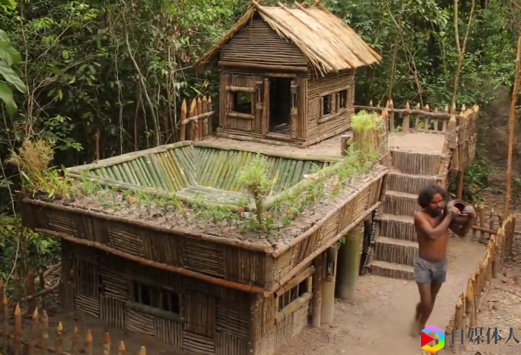 📚 野外生存原始技术丛林建造泳池宫殿房子抖音热门中长视频素材
