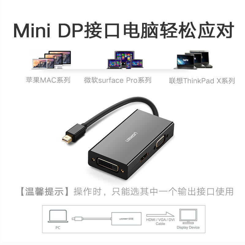 📚 绿联MiniDP转VGA/HDMI/DVI转换器高清连接线雷电接口电脑接投影4K