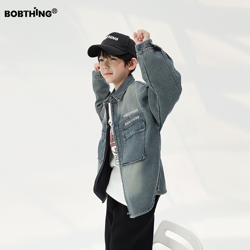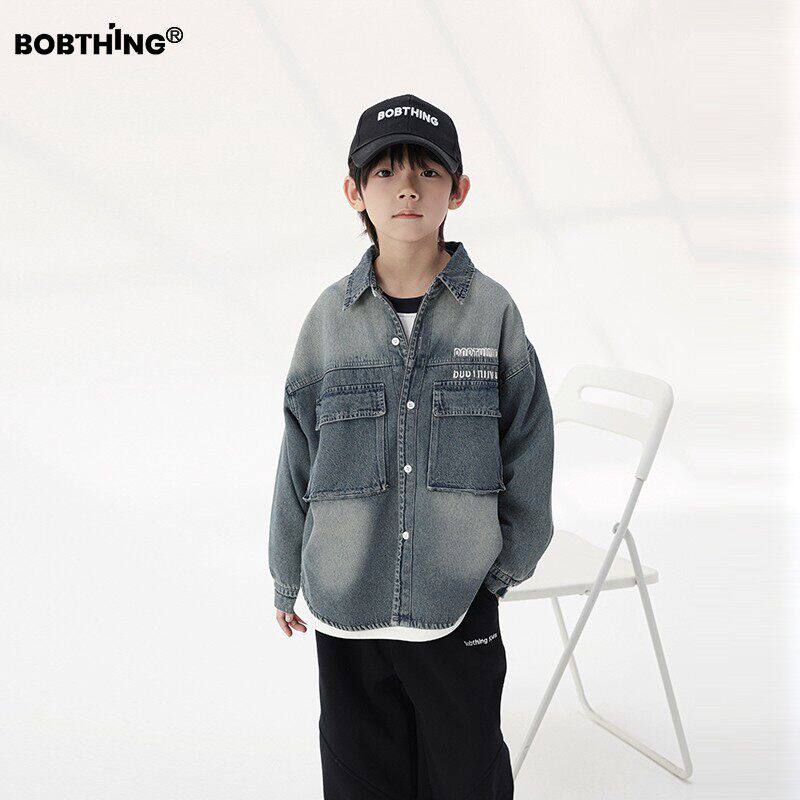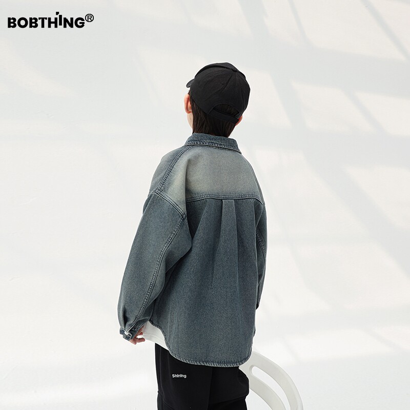 📚 男童冬季加绒加厚牛仔衬衫2024新款儿童工装风衬衣翻领外套潮童装