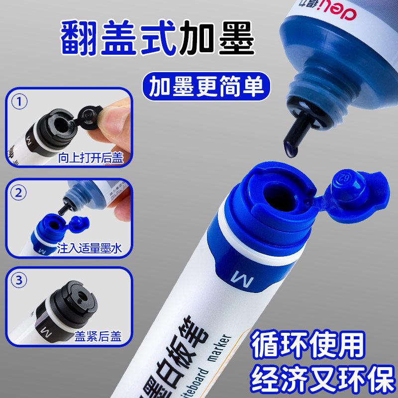 📚 得力白板笔可擦可加墨水大容量白班笔粗头大号儿童黑板笔教师用水性白板写字笔易写易擦彩色黑板水笔黑画板笔
