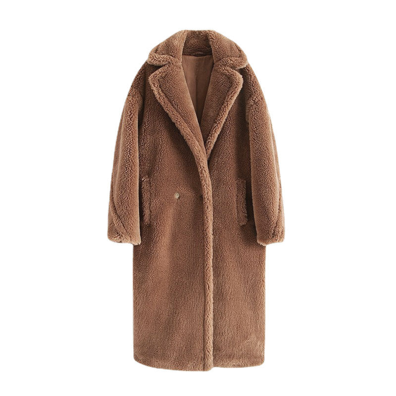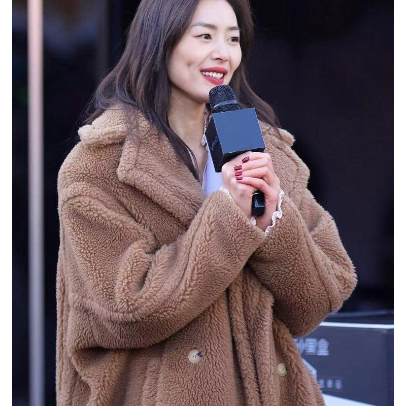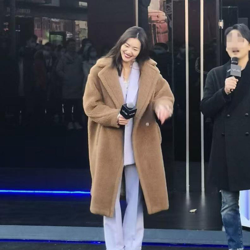 📚 刘雯同款泰迪熊大衣女冬季廓形羊驼绒皮草中长款羊羔毛摇粒绒外套
