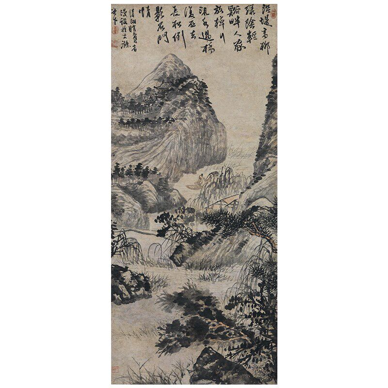 📚 石涛柳溪钓艇图高清微喷清代名家山水画临摹画稿底稿立轴挂画画心