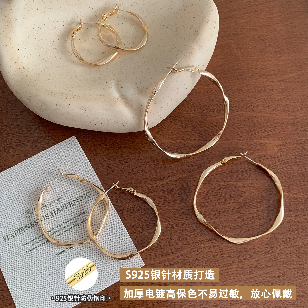 📚 突然的喜欢林欢儿王玉雯同款金色莫比乌斯圈圈耳环高级显脸小耳圈