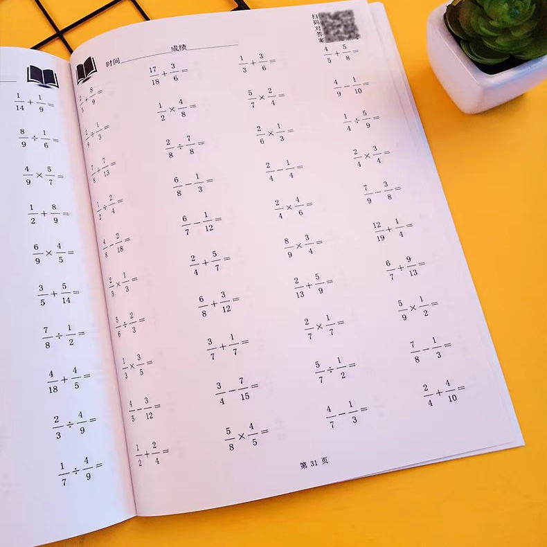 📚 贝比贝尔数学专项分数的加减乘除四则混合运算口算分数计算专项练习题小学六年级强化训练册通用版分数简便运算计算能力训练提升