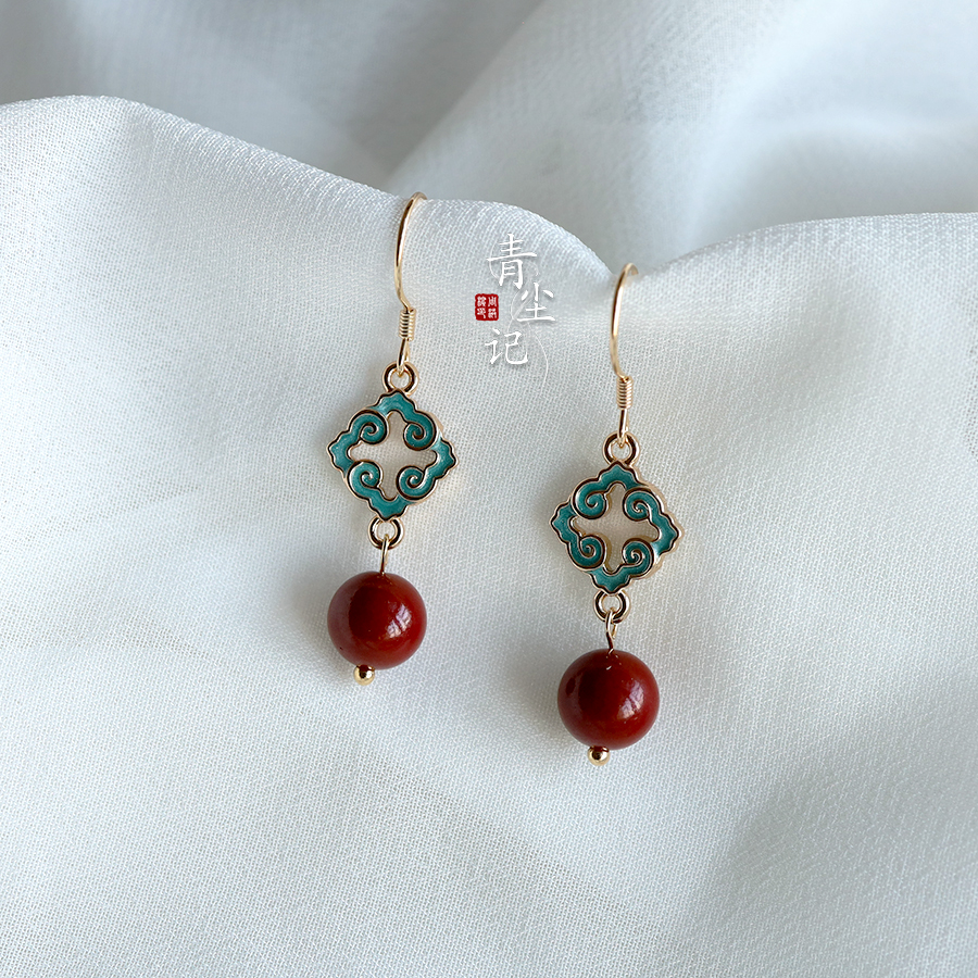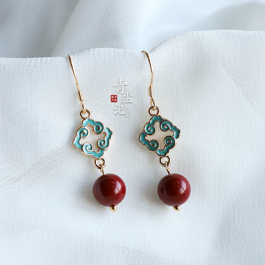 📚 青尘记【离岸】925银镀金耳饰朱砂珠耳钩耳环耳夹珐琅彩古典古风
