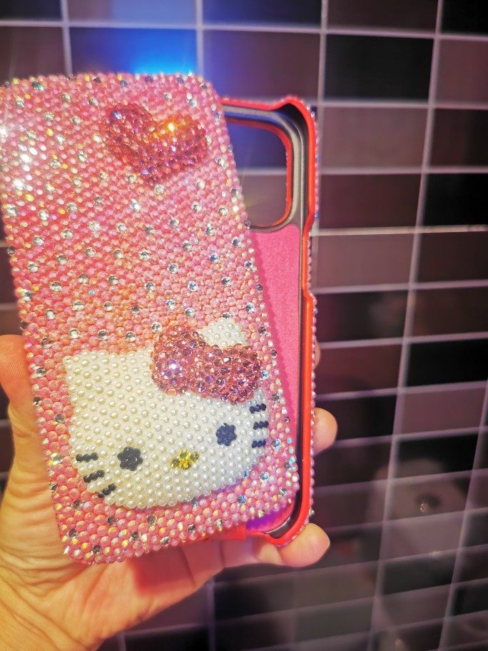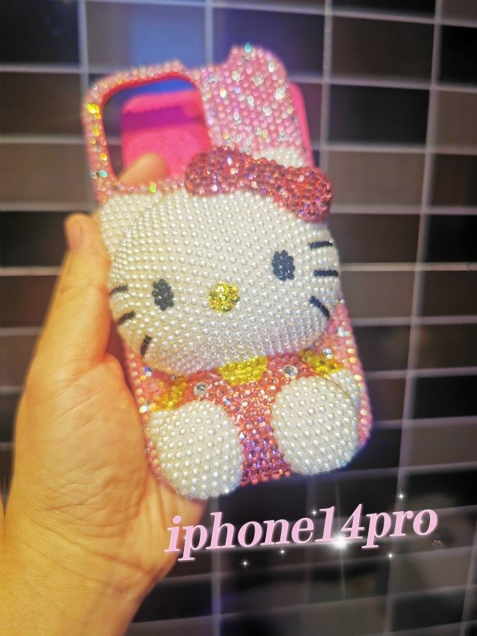 📚 秋山桃独家KTiphone17/15/14/13/12双面Hellokitty进口贴钻手机壳