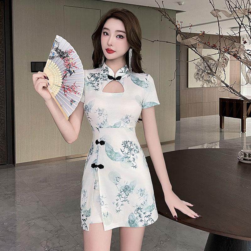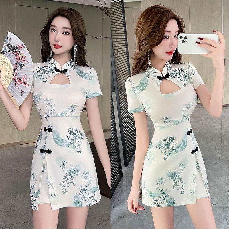📚 春季新款足浴spa技师工作服气质时尚改良复古旗袍连衣裙两件套女