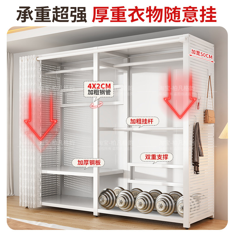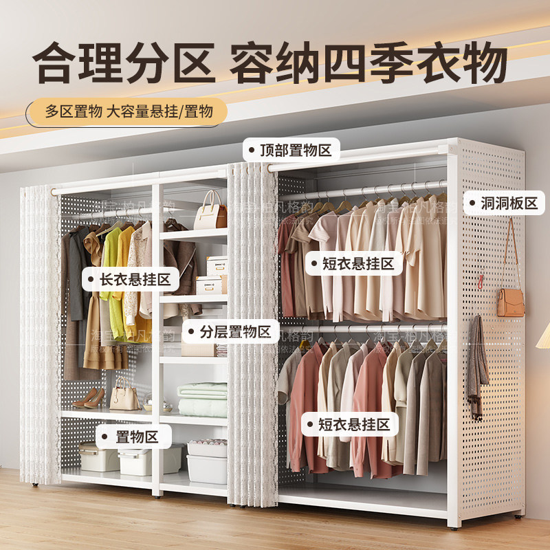 📚 衣帽架全金属洞洞板开放式衣橱挂衣架现代简约家用卧室落地置物架