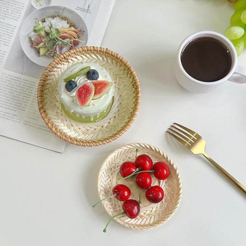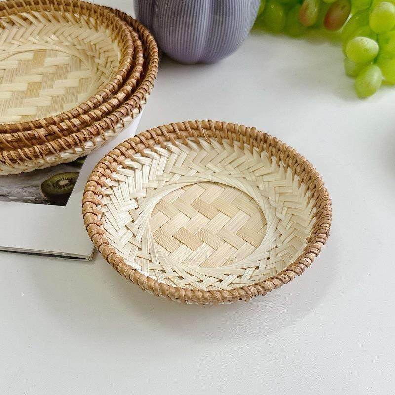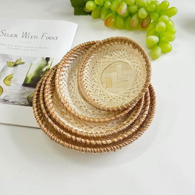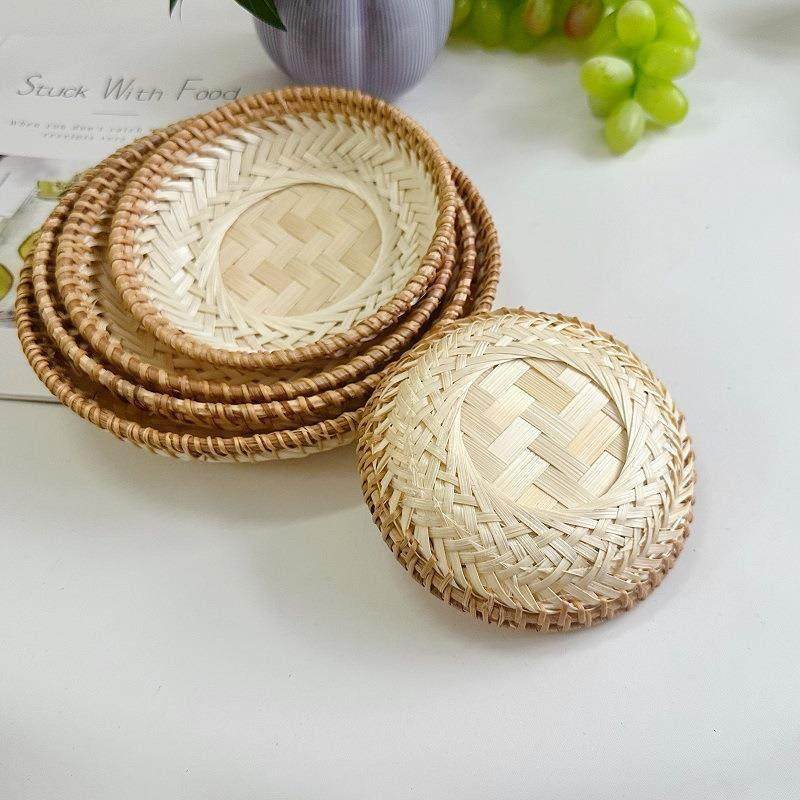 📚 竹编装馒头果盘馒头筐竹藤竹筐篮子小碟子家用馒头果盘托盘圆形干