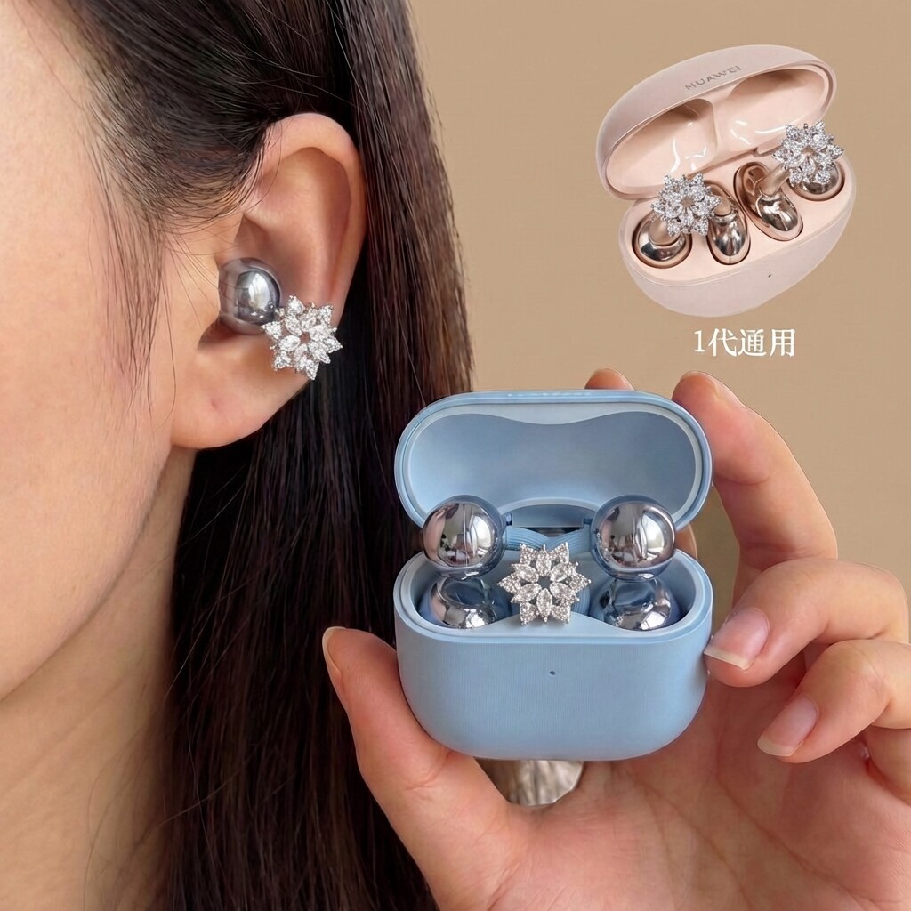 📚 华为freeclip二代耳夹耳机一代配饰钻扣耳饰耳扣春日霜花免拆可盖