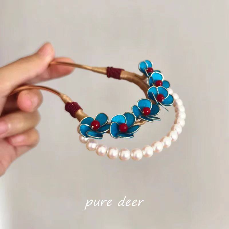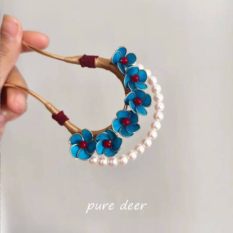 📚 【花未眠】翠蓝花朵新中式发簪u型簪子女古风高级感汉服发饰新款