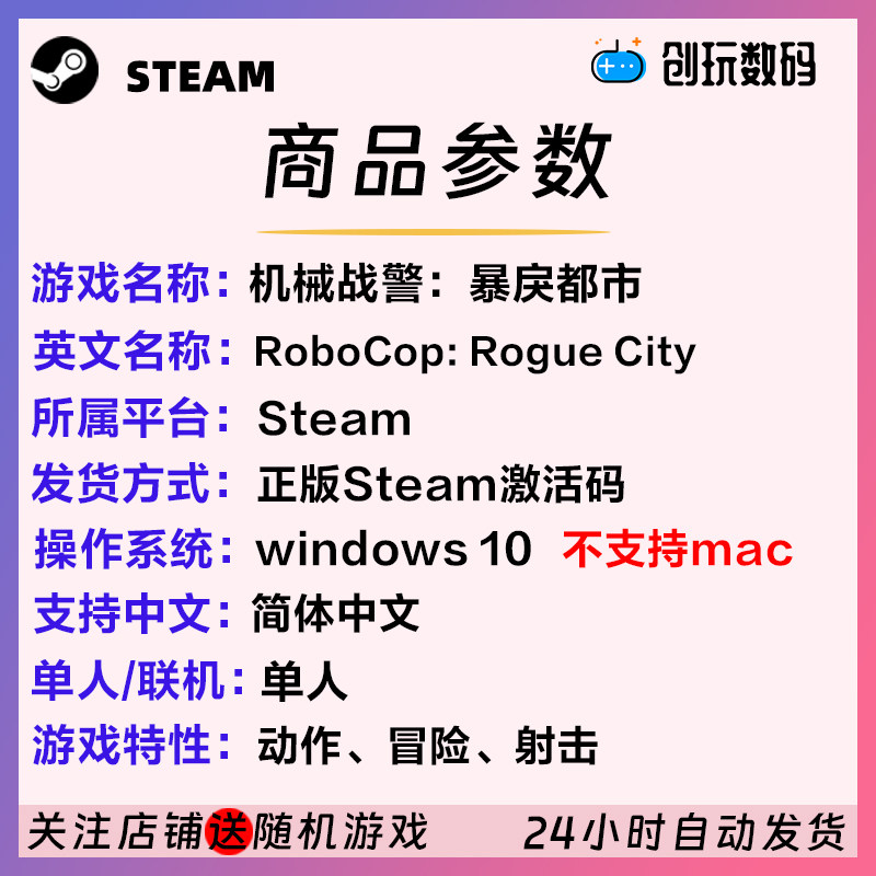 77¥ CZ001 hTVuUNAudfG¥ https://m.tb.cn/h.7DCs2wh Steam正版 机械战警:暴戾都市 RoboCop: Rogue City 国区CDK --------------------- 【原售价】35元 【现售价】15.9元。
