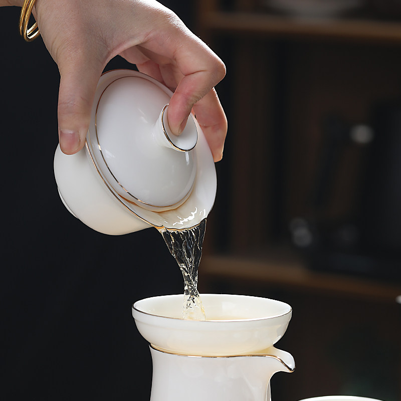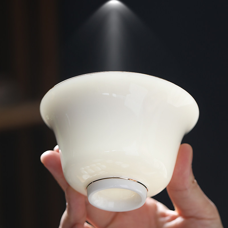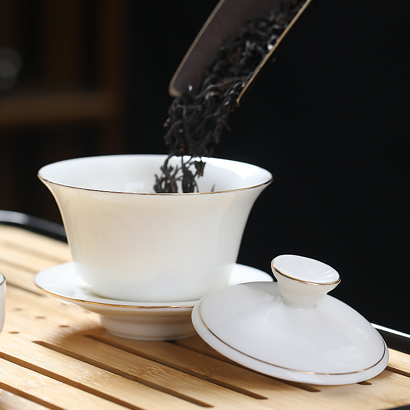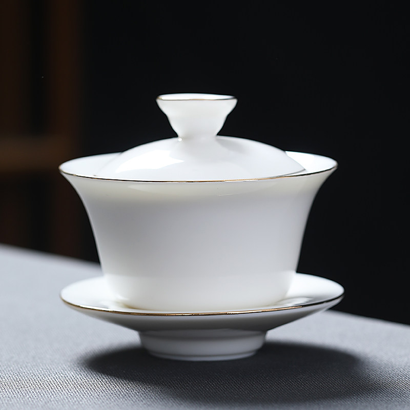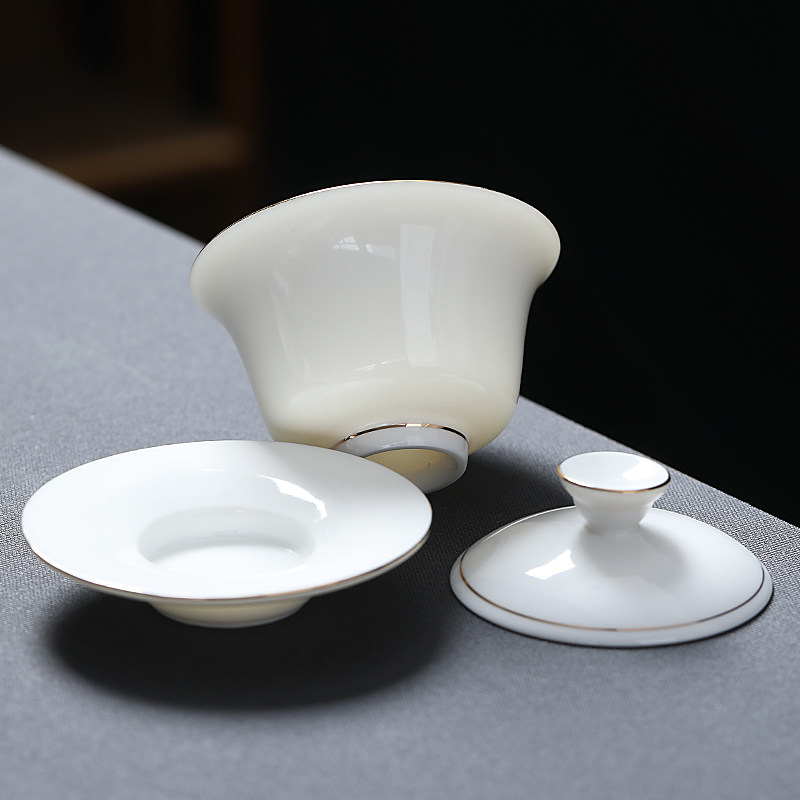 📚 白瓷盖碗羊脂玉瓷描金三才碗大茶碗陶瓷泡茶器敬茶杯大碗中式纯色