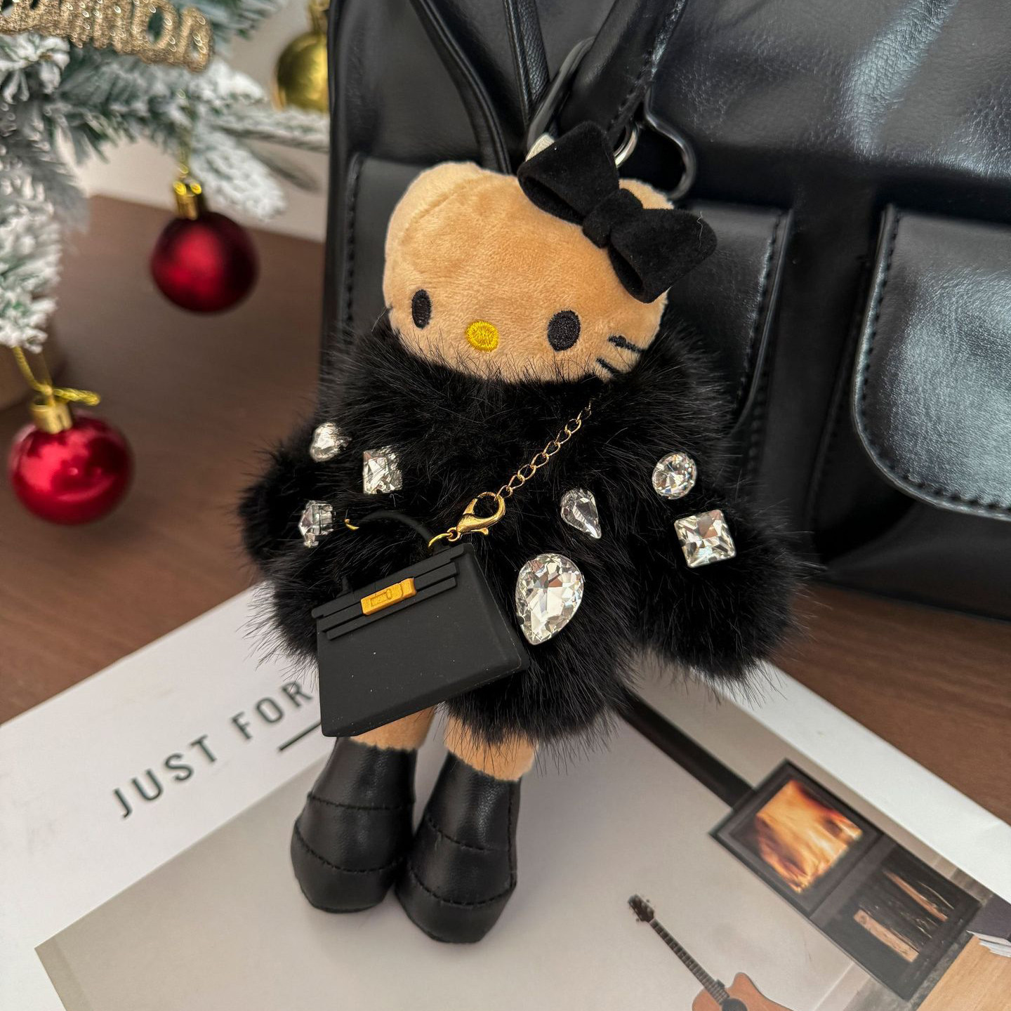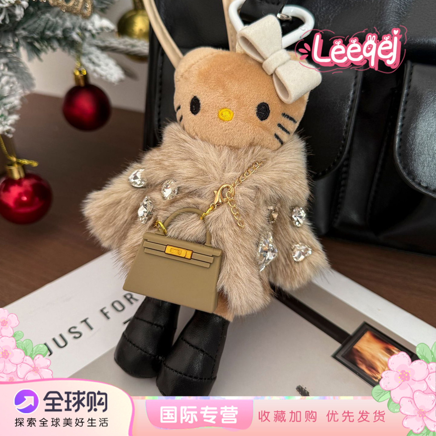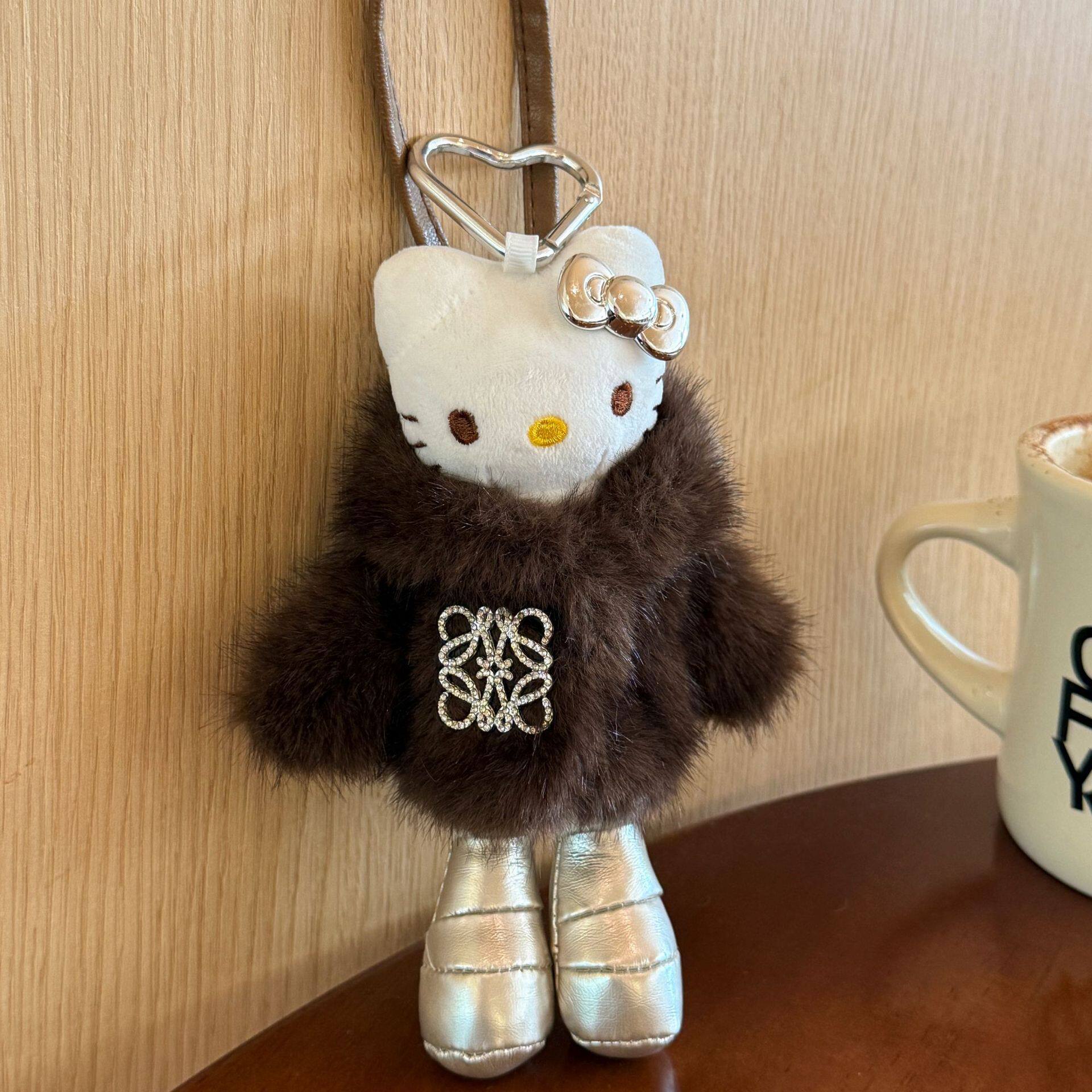 📚 日本LEEQEJ闪钻皮草kitty挂件长腿包包挂饰女生毛绒公仔玩偶挂件