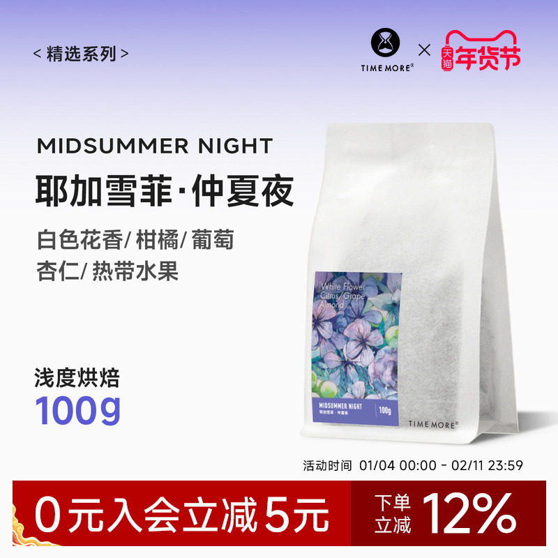 📚 泰摩咖啡埃塞俄比亚仲夏夜耶加雪菲咖啡豆浅烘焙手冲精品咖啡100g