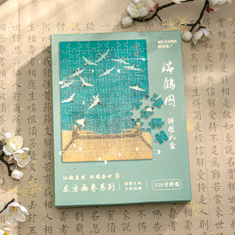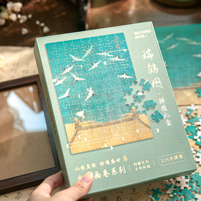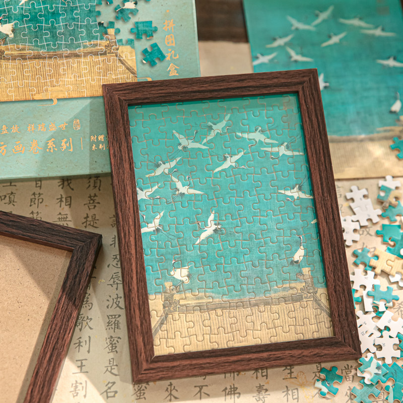 📚 高颜值古风中国书法名画瑞鹤图减压益智治愈系3到6岁拼图成人版纪念品礼盒相框桌面摆件生日礼物手工玩具解闷