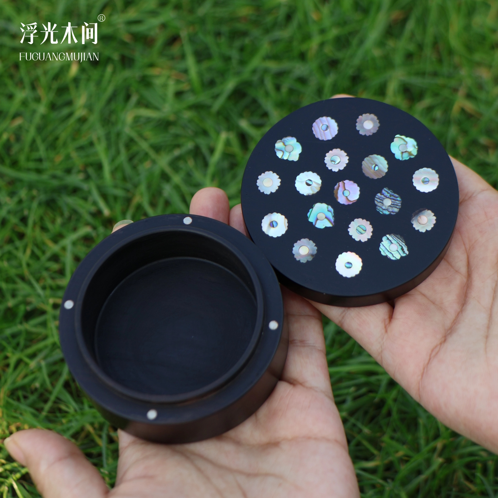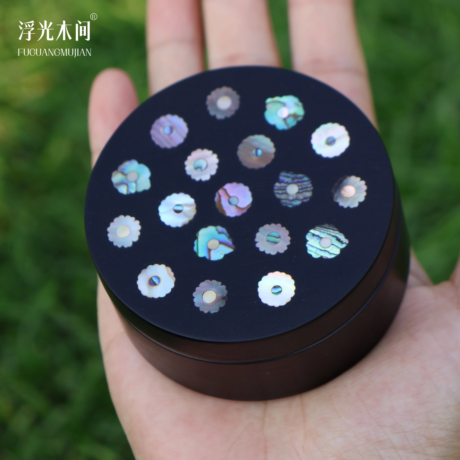📚 浮光木间 宝相花螺钿镶嵌收纳罐紫光檀实木贝壳茶叶罐圆形储存罐
