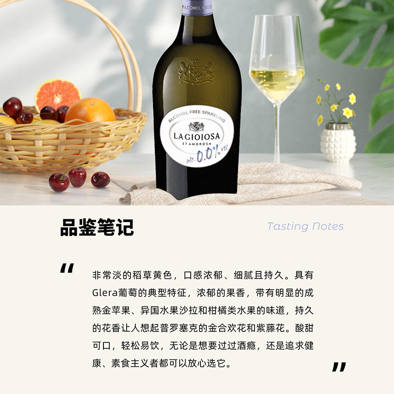 📚 喜乐滋La Gioiosa普罗塞克Prosecco无醇无酒精起泡酒葡萄酒气泡酒