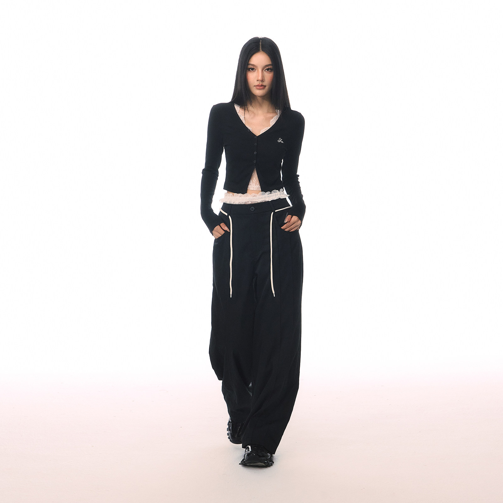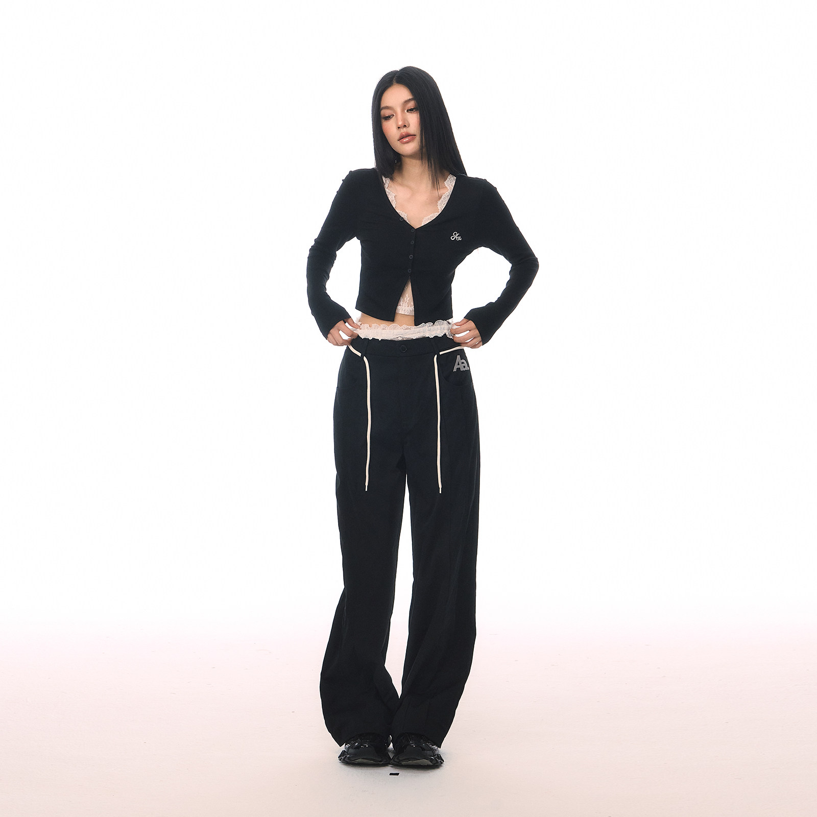 📚 ACMEAURA 复古蕾丝花边拼接撞色假两件休闲裤可拆卸设计直筒卫裤
