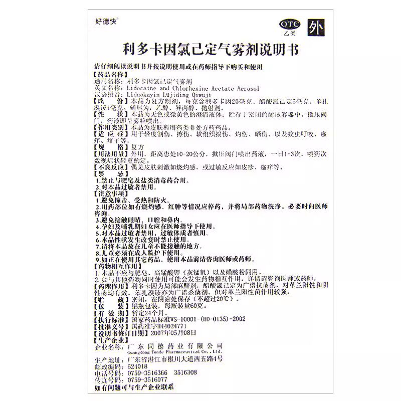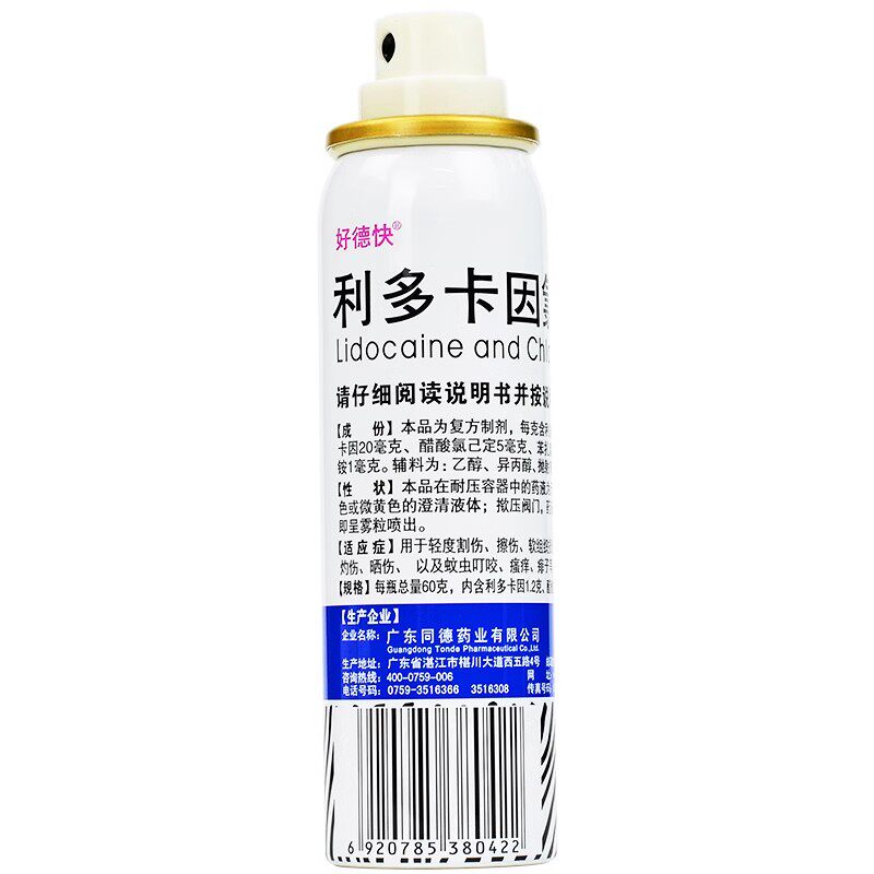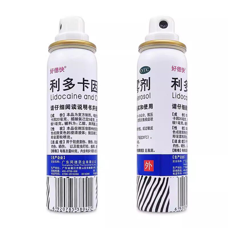 📚 好德快利多卡因氯己定气雾剂男女晒伤痱子蚊虫叮咬药含局部麻醉剂