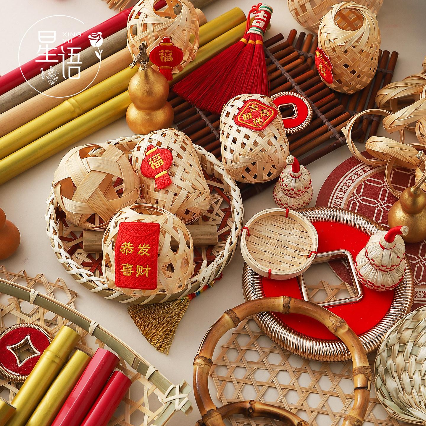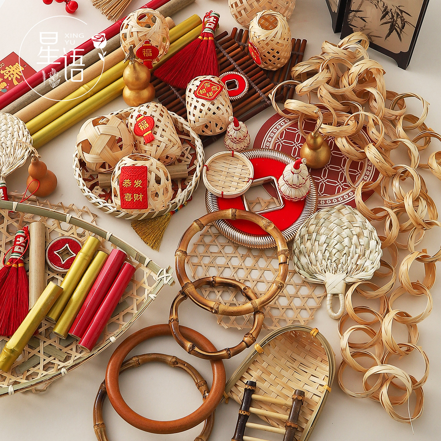 📚 星语 2026年宵节DIY竹编小配饰手工编织灯笼平安扣挂饰花艺材料