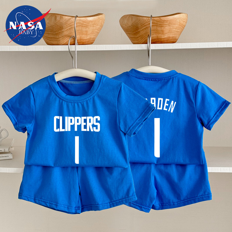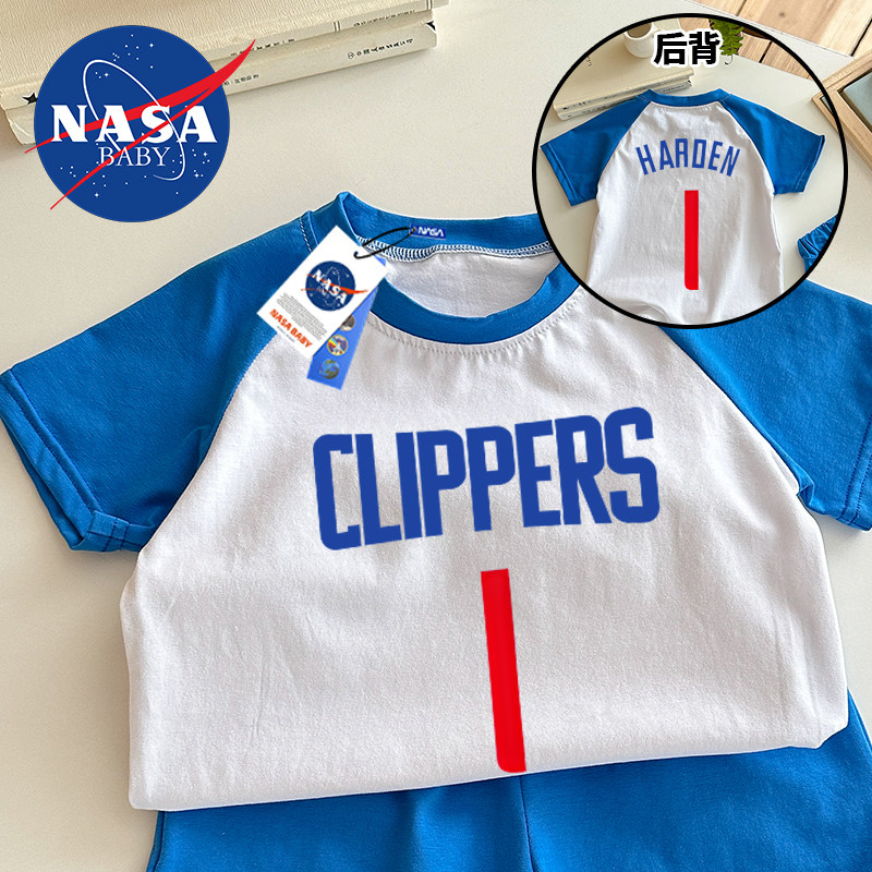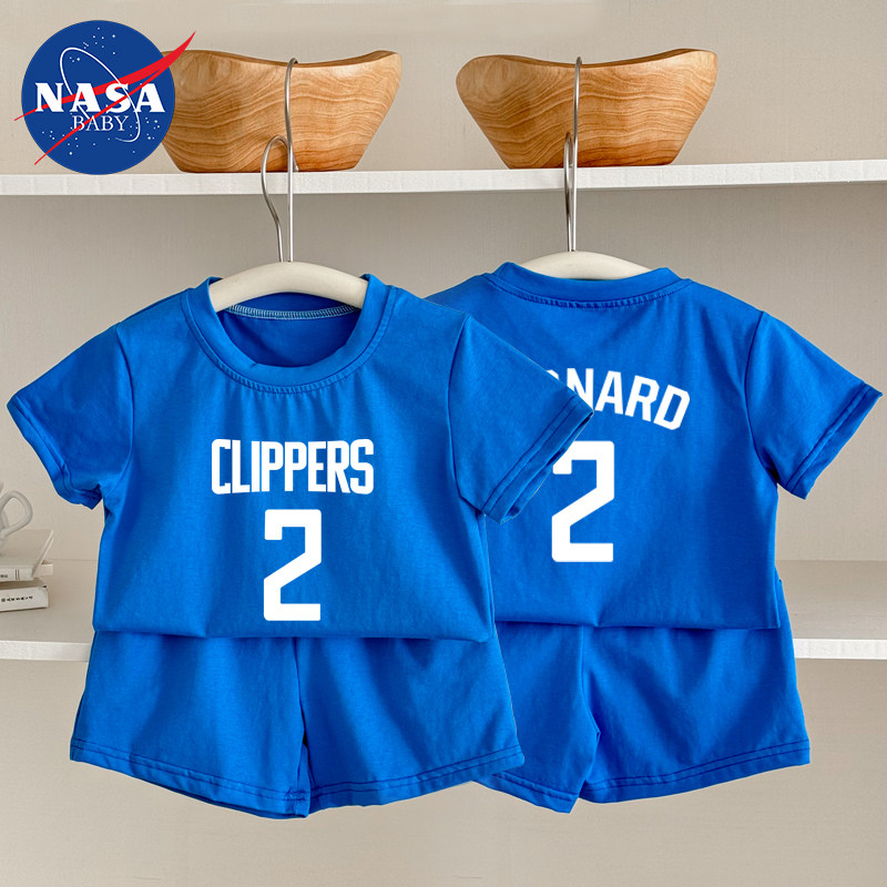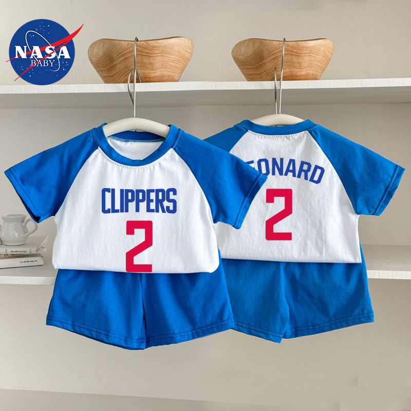 📚 夏季婴儿童短袖短裤哈登快船运动球衣伦纳德分体套装宝宝T恤纯棉