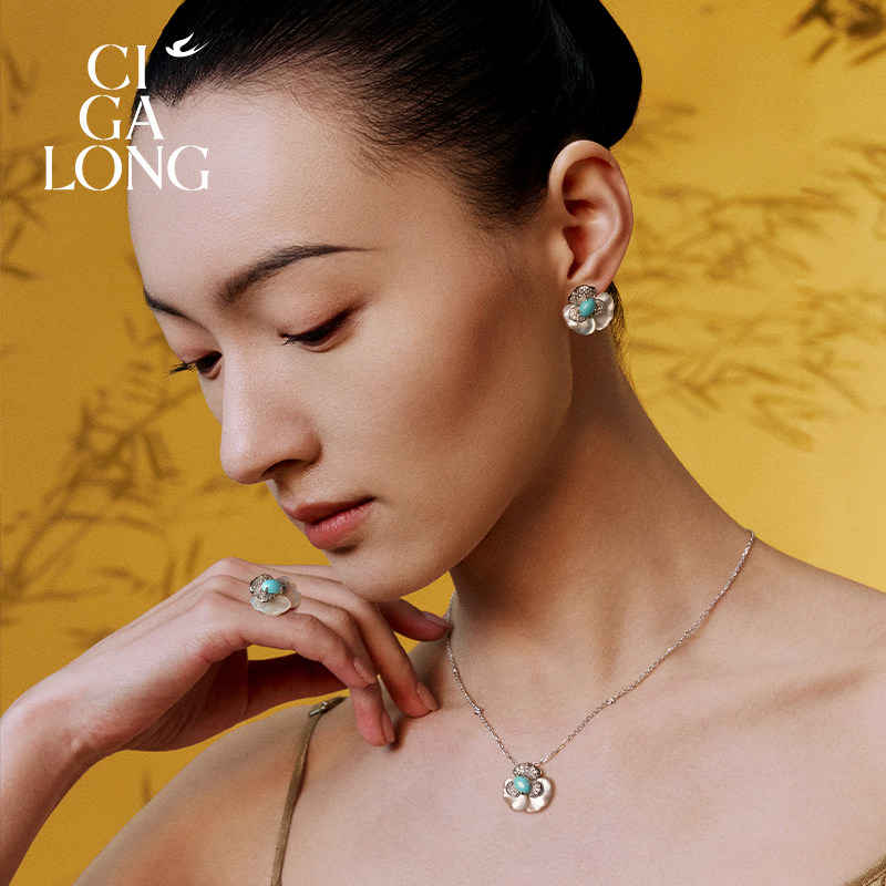 📚 CIGALONG龙梓嘉三色堇天山绿松石项链耳钉戒指梨满园新中式珠宝