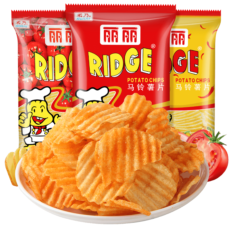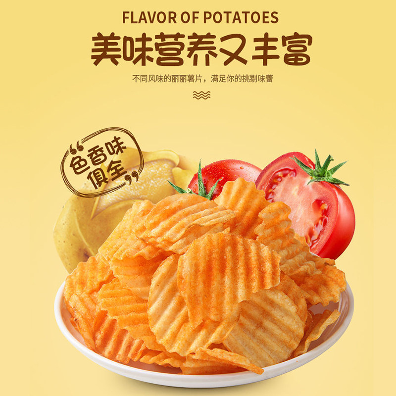 📚 丽丽薯片烤肉番茄香辣味6大包大波浪马铃薯薯片膨化小吃休闲零食