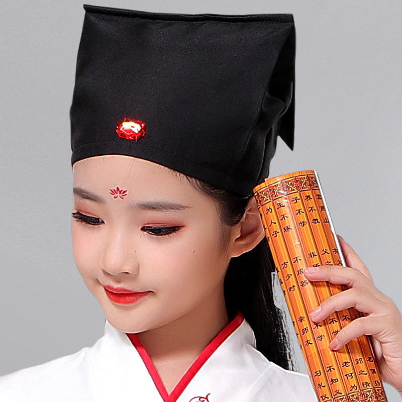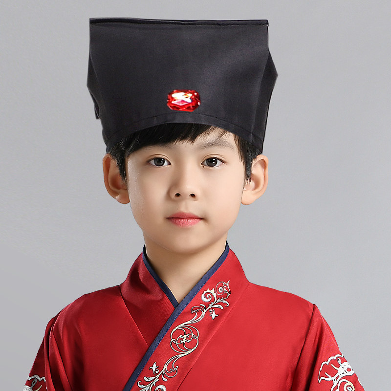 📚 红宝石汉帽汉服帽子男童女童古装书生帽古风帽状元帽国学书童头饰