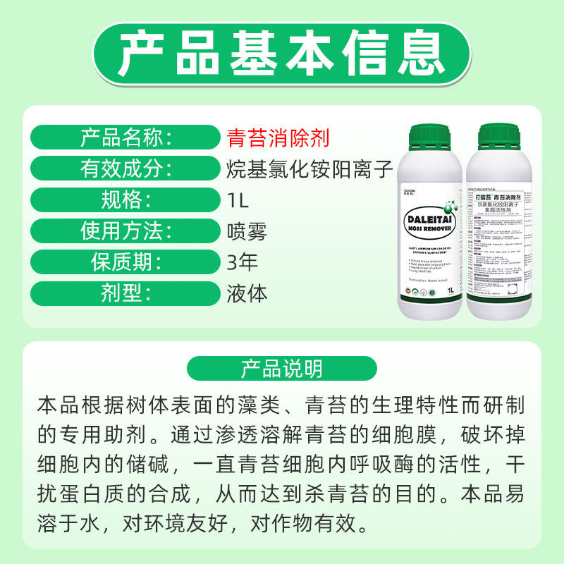 📚 打擂苔青苔消除剂烷基氯化铵阳离子表面活性剂柑橘苹果梨树除青苔