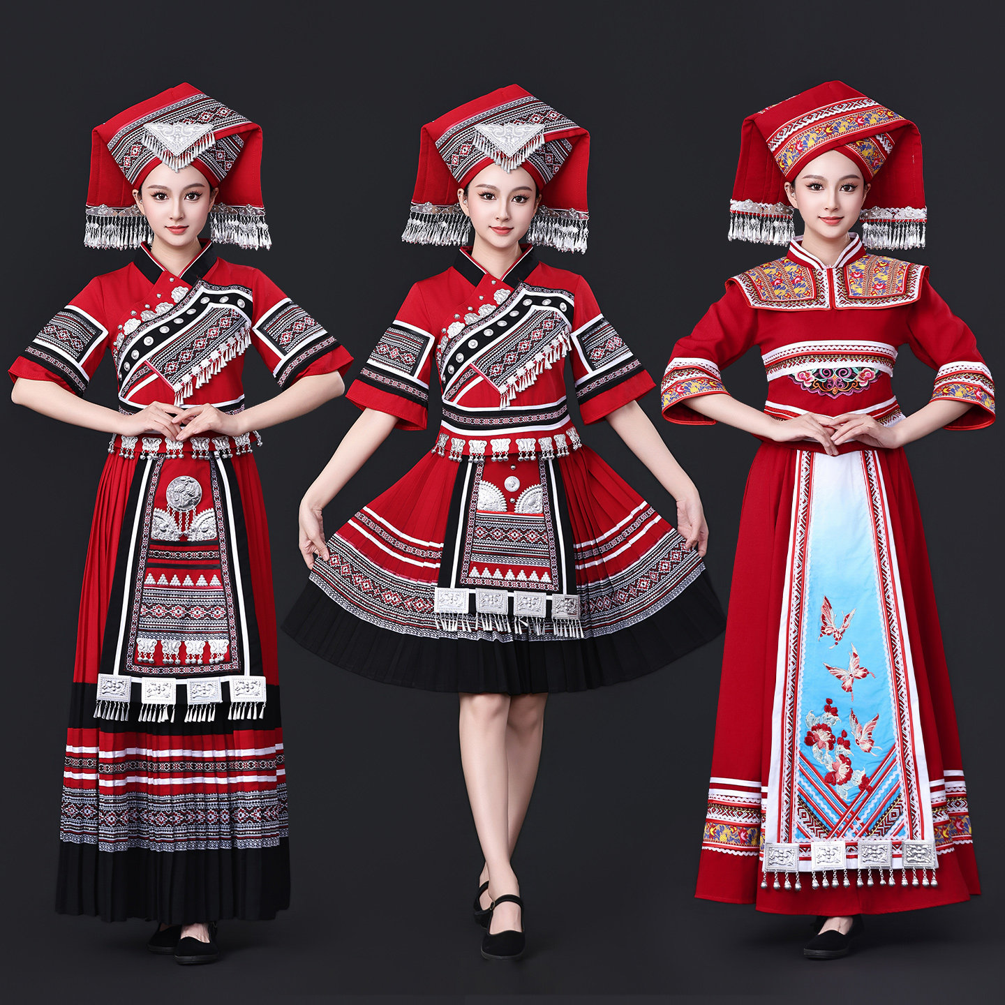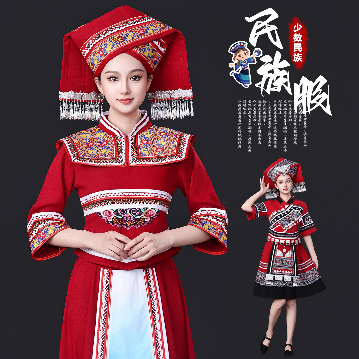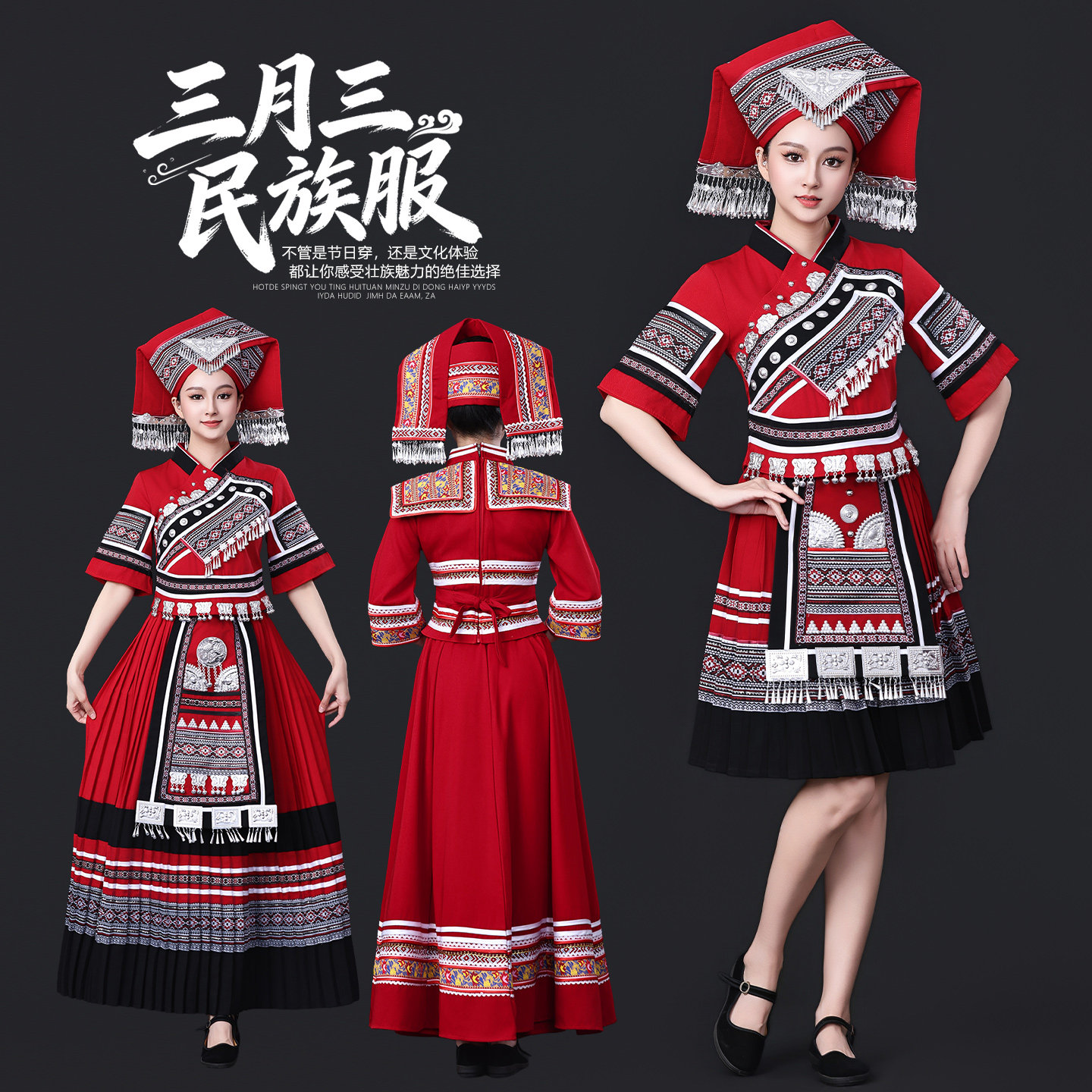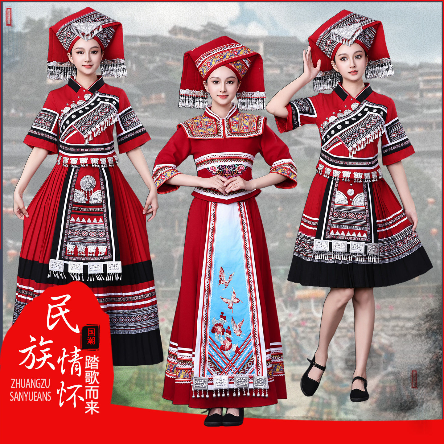 📚 广西壮族三月三成人演出服饰女少数民族舞台大裙摆旅拍刺绣盛装