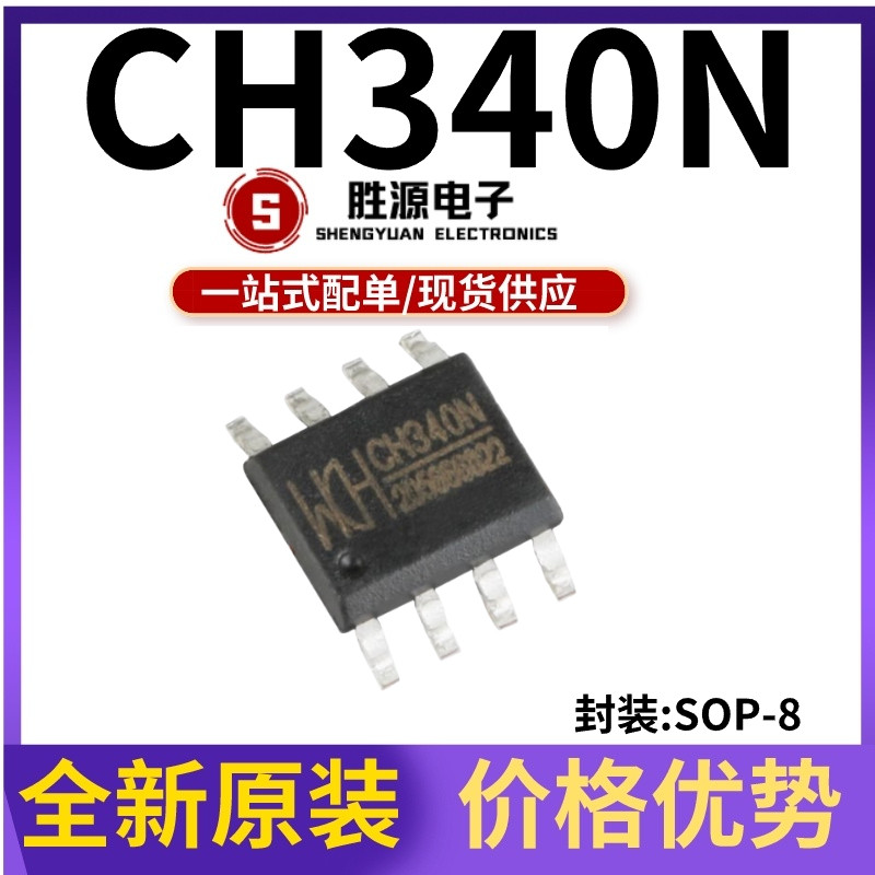📚 原装正品 CH340N 贴片 封装SOP-8 USB转串口芯片内置晶振 USB芯片