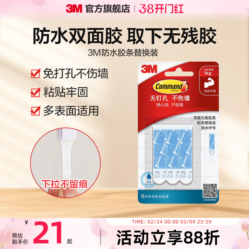 📚 3M高曼无痕挂钩浴室防水胶条替换强力双面胶免打孔强力粘胶