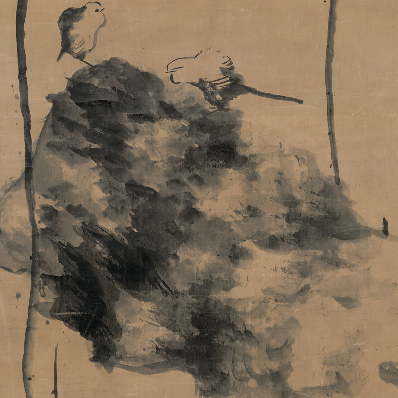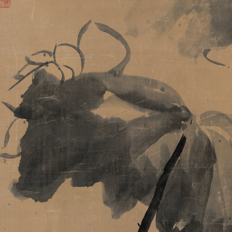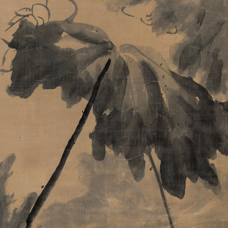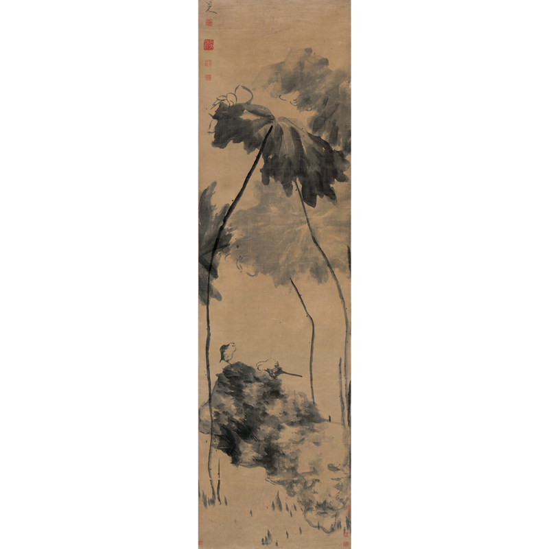 📚 新品八大山人朱耷荷花双禽图仿古书法水墨国画复制品微喷无框装饰
