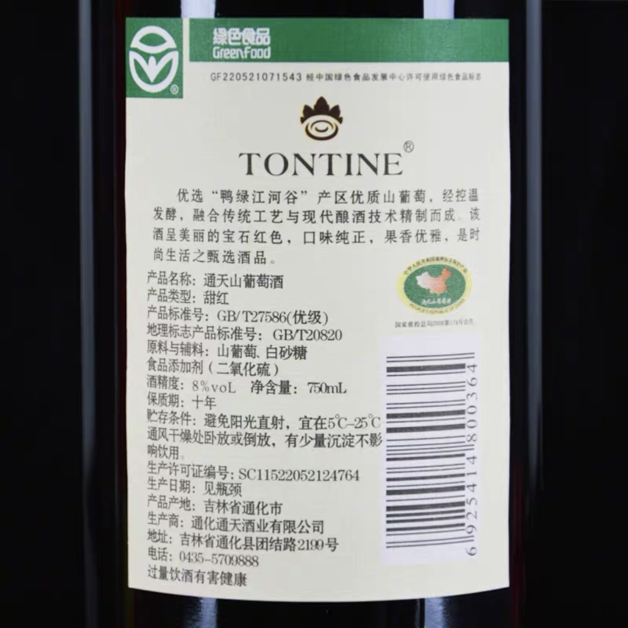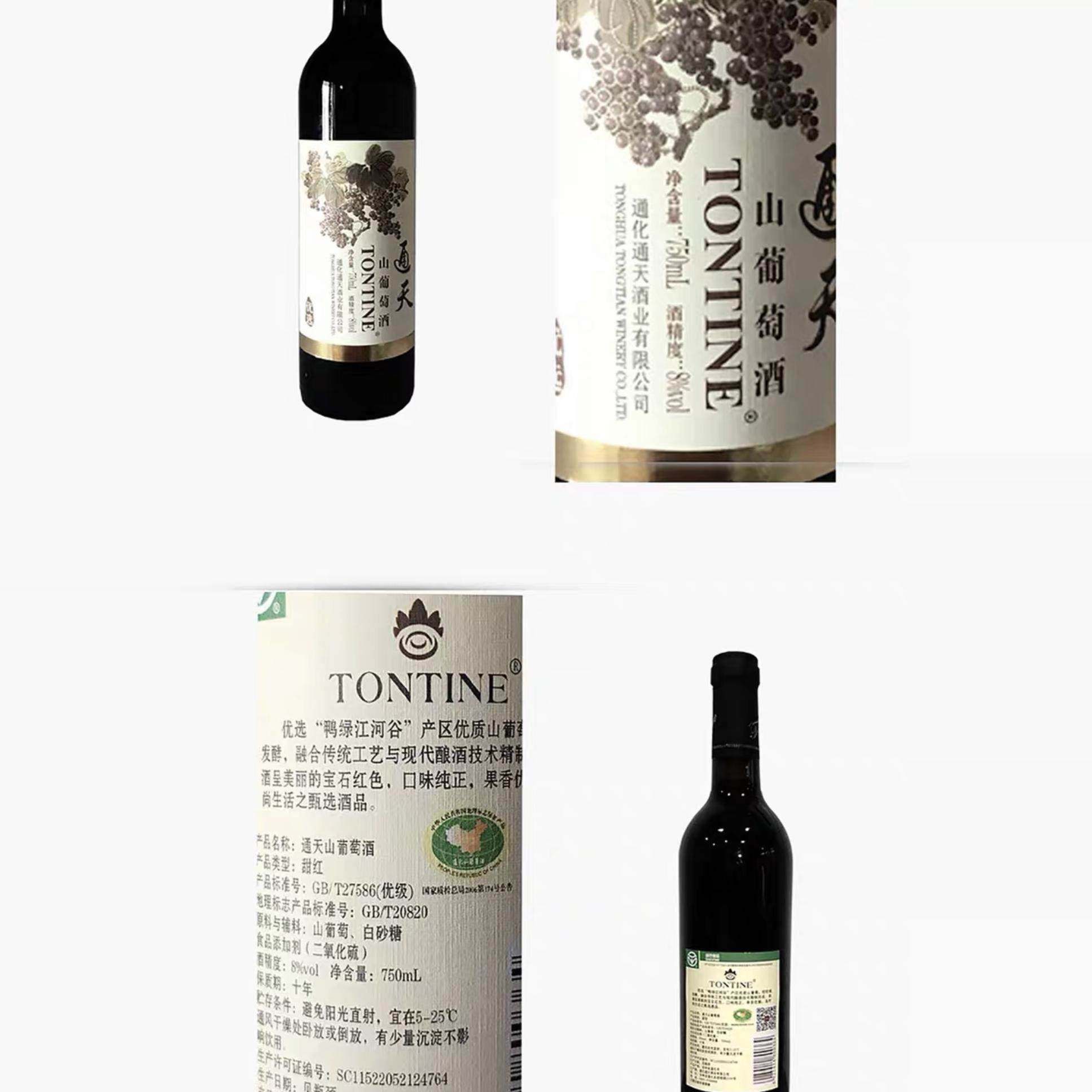 📚 通化特产葡萄酒中国通天优选山葡萄酒 8度750ml 甜型红酒通化特产