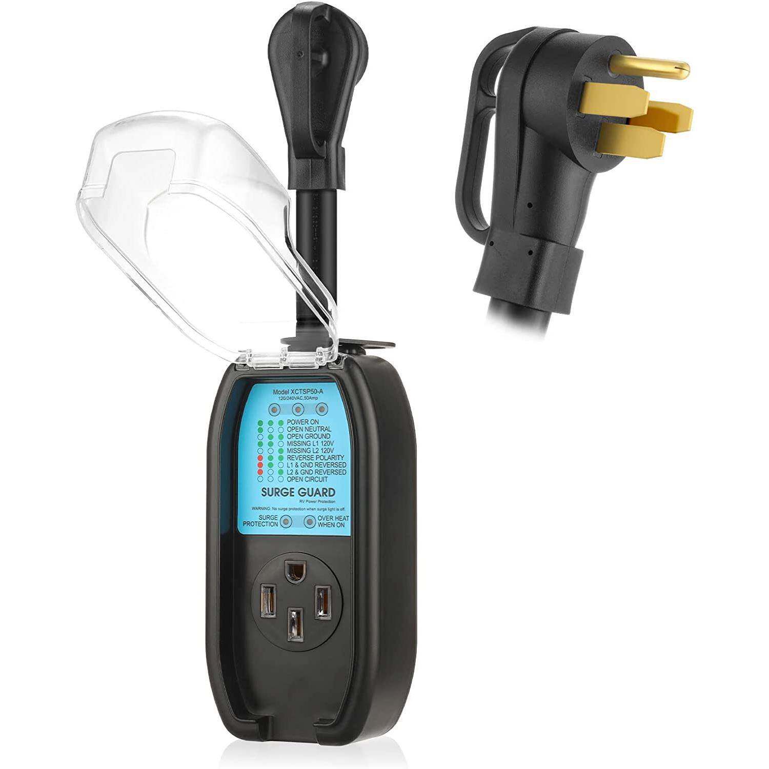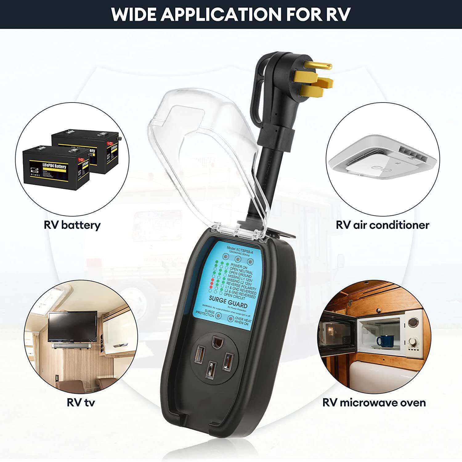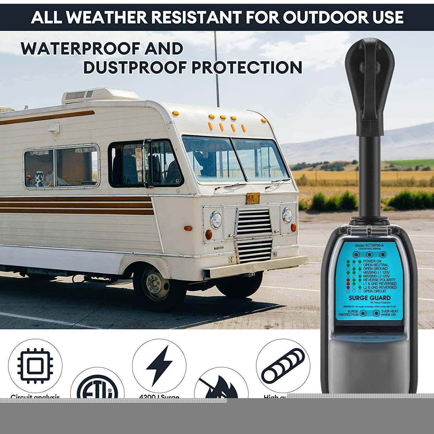 📚 RV浪涌保护器4200焦耳50安培浪涌保护器带防水盖和电路分析器