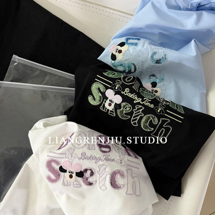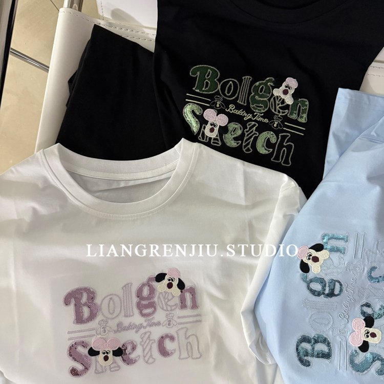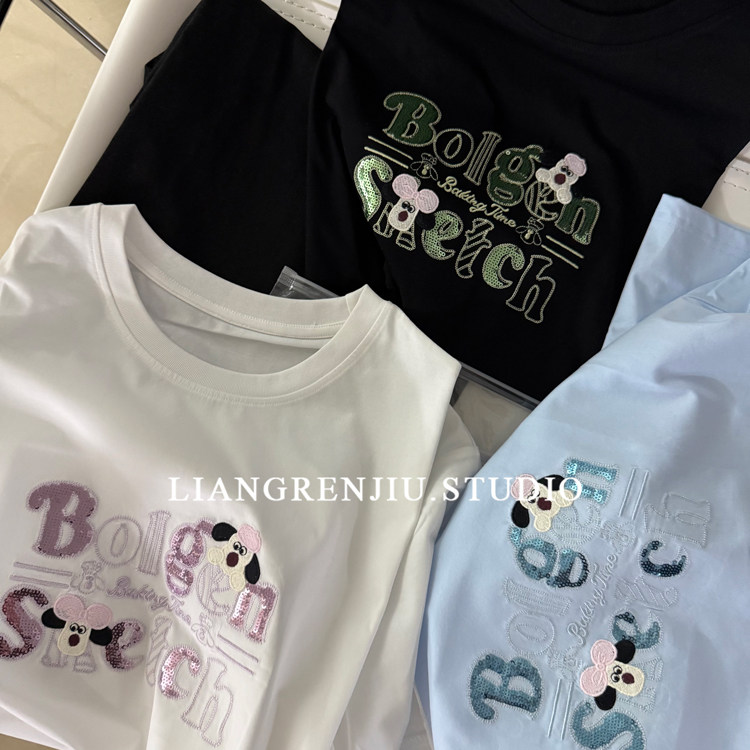 📚 公司货。亮片刺绣。优质宽松短袖夏季T恤9682W