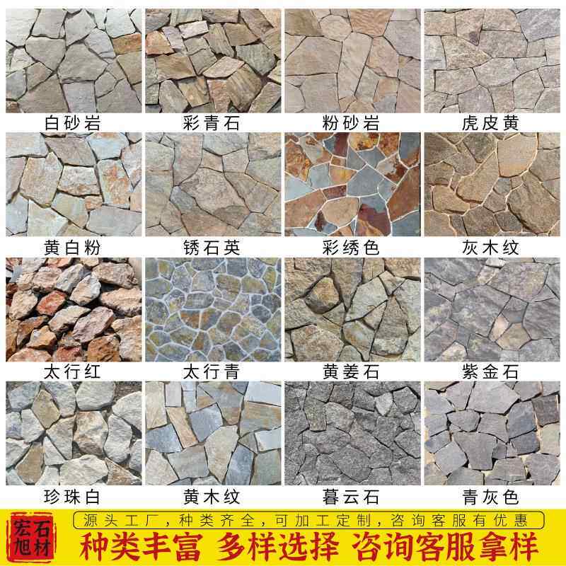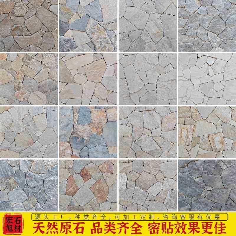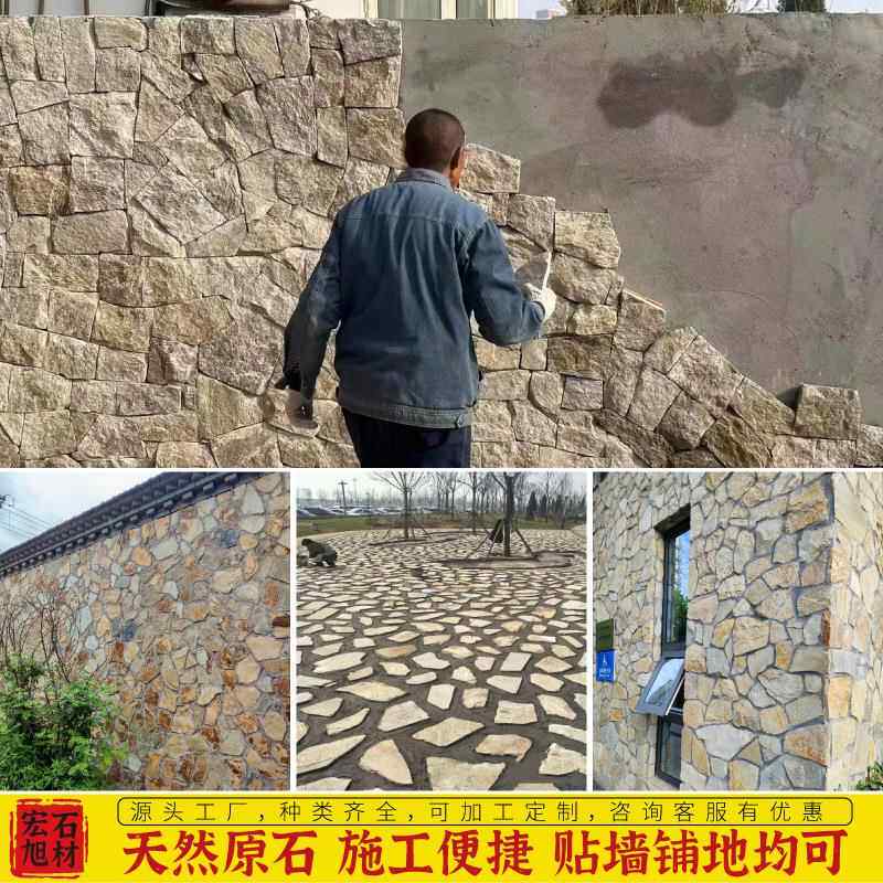 📚 板岩不规则毛石板天然黄木纹碎拼石黄色片石别墅外墙乱石板文化石