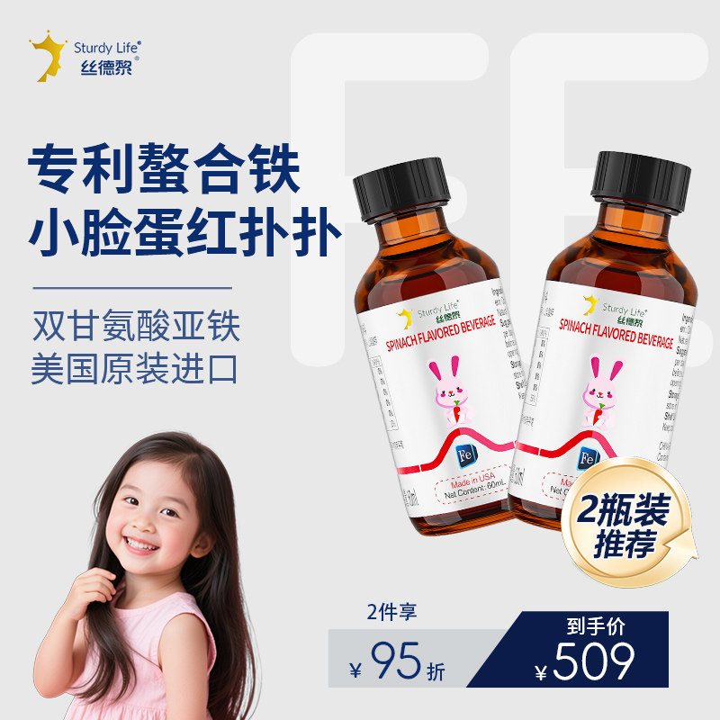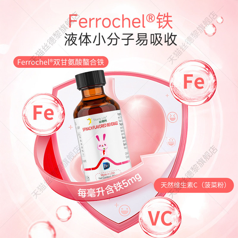 📚 丝德黎铁剂儿童补液体滴剂螯合铁学生官方旗舰店美国进口2瓶菠菜