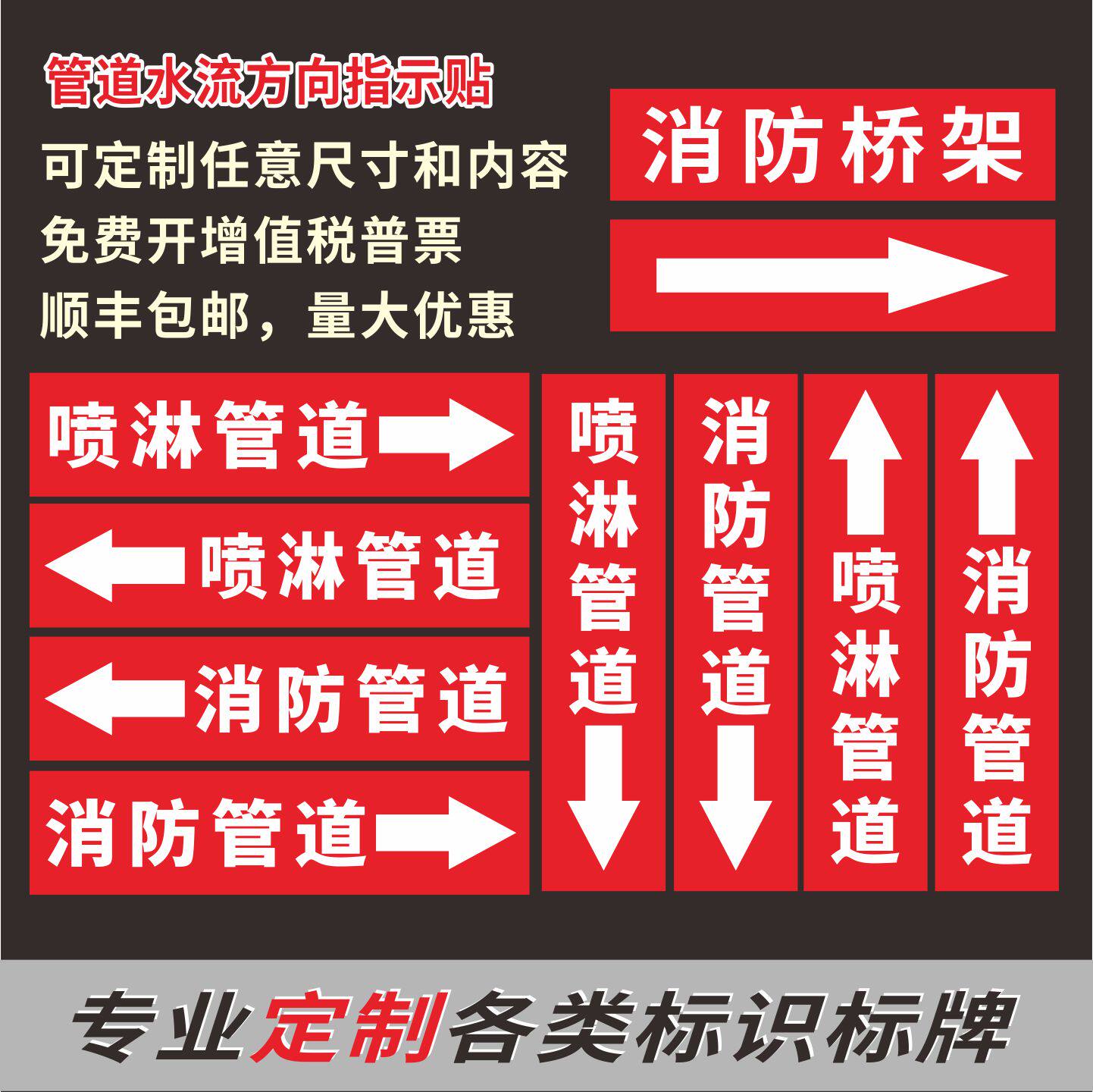 📚 箭头标识消防喷淋指示水流方向指示贴纸灭火器管道常开常闭标识牌