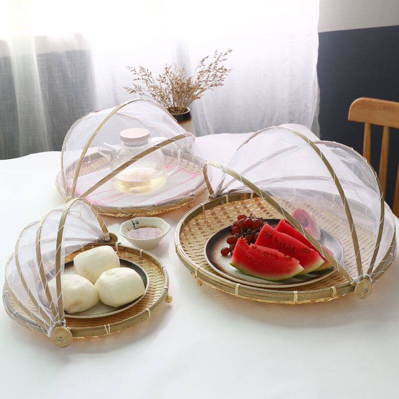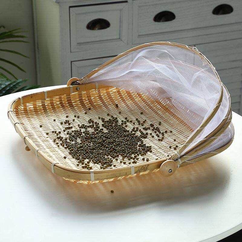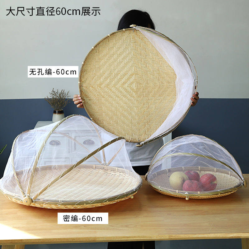 📚 竹编晾晒篮带网罩家用防蝇防虫筐馒头筐圆簸箕农家竹筛子竹制品