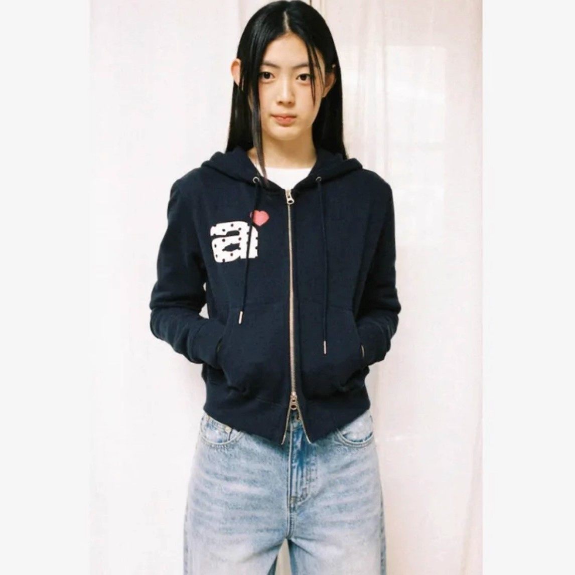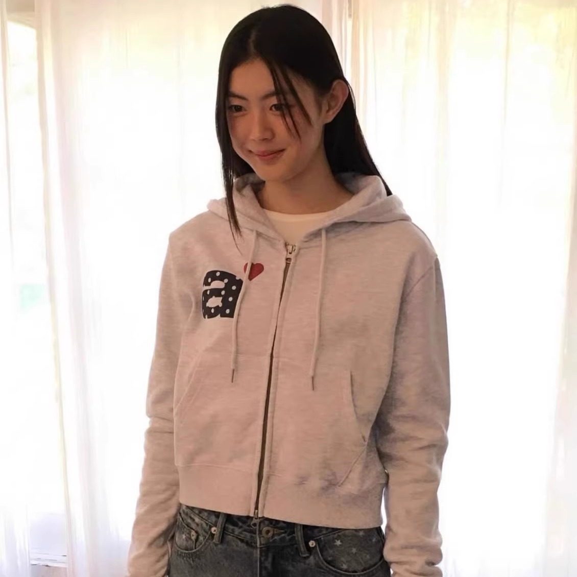 📚 现货!aeae韩国设计师品牌学院风字母爱心印花短款连帽卫衣外套女