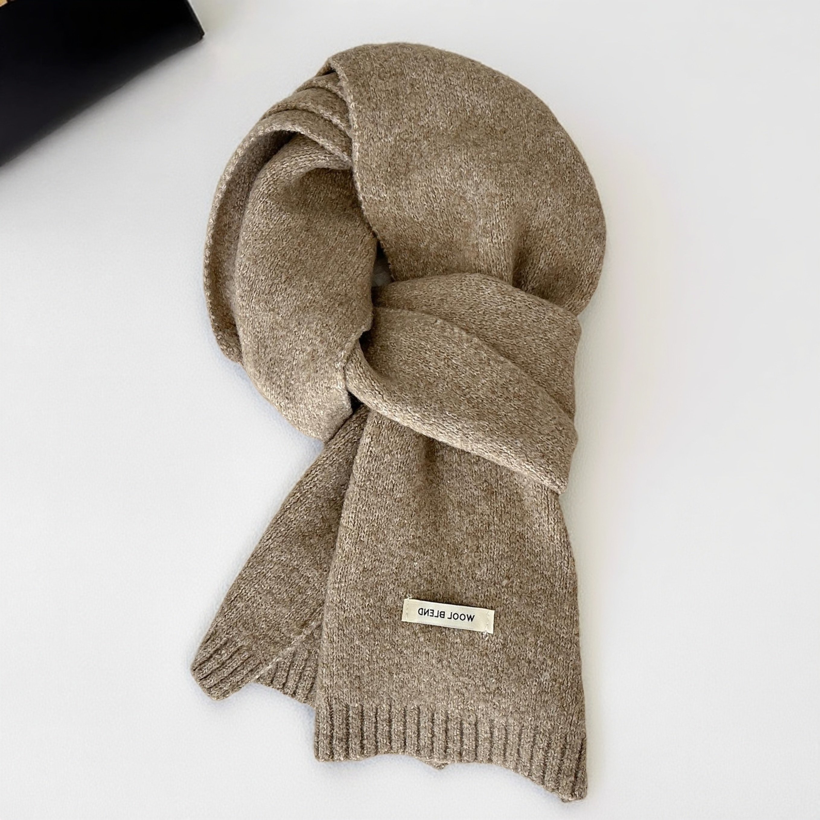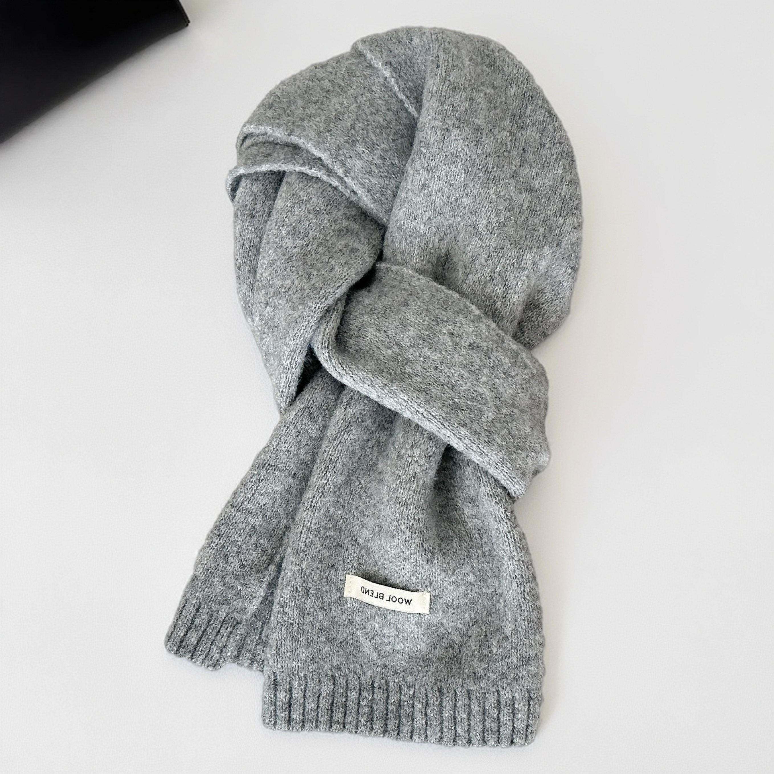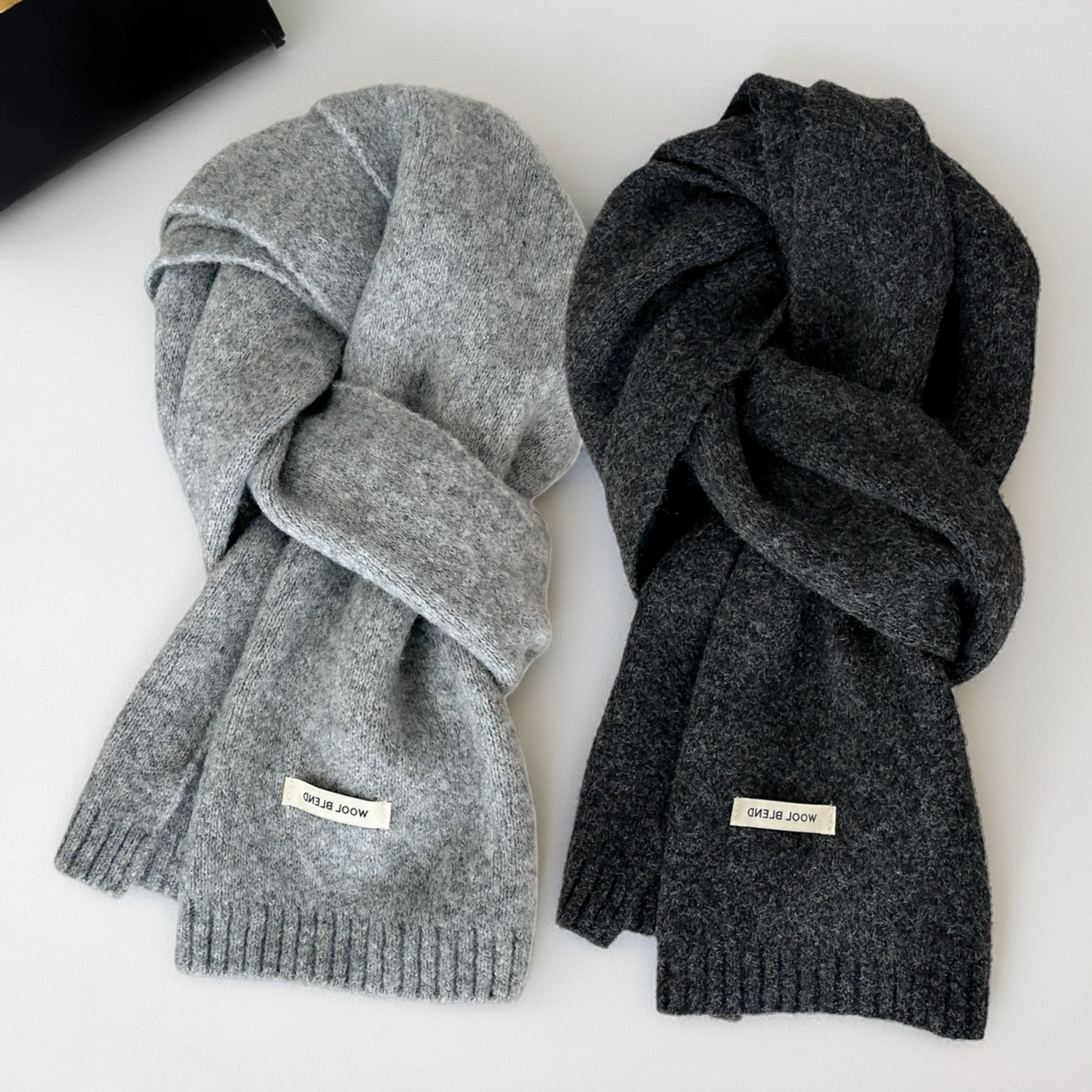 📚 含羊毛灰色韩版纯色针织围巾男女情侣冬季保暖百搭高级感加厚围脖