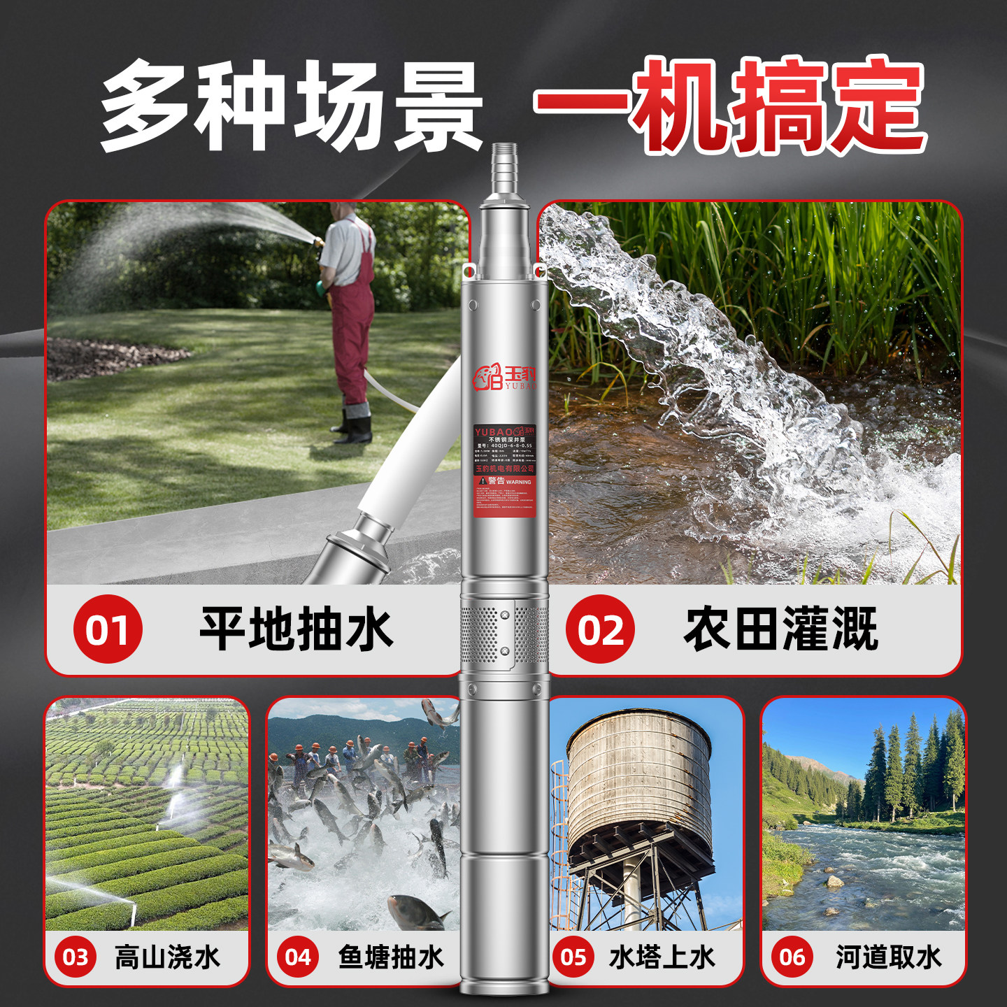 📚 水泵深井泵潜水泵220v高扬程大流量不锈钢家用小型抽水机深井水泵