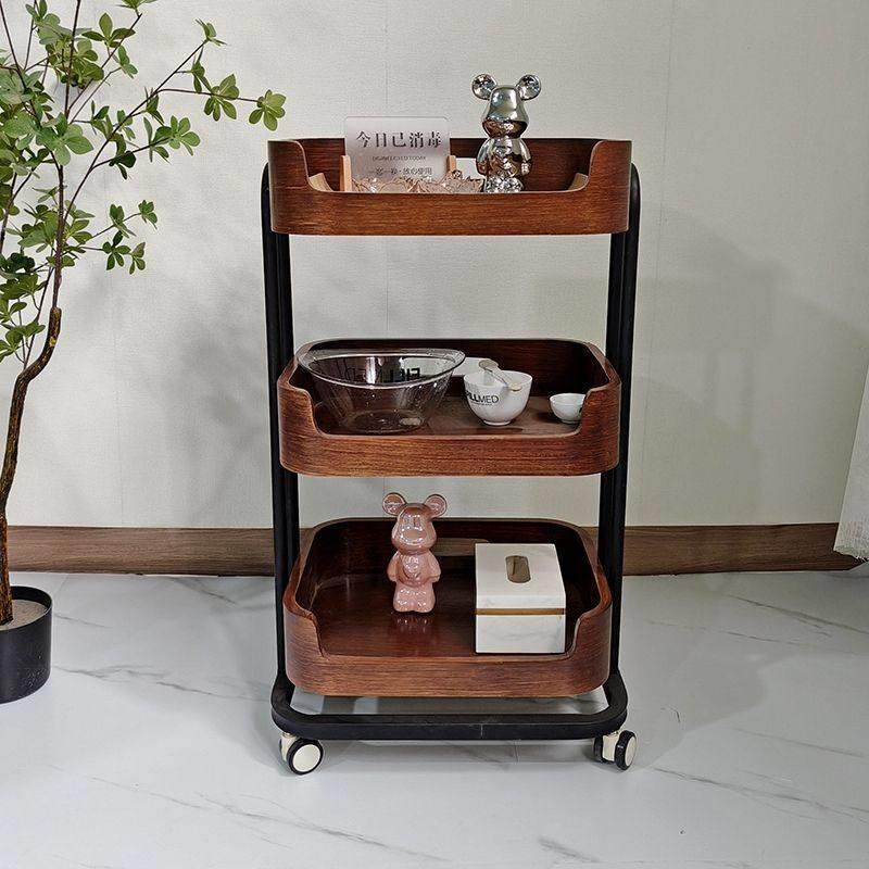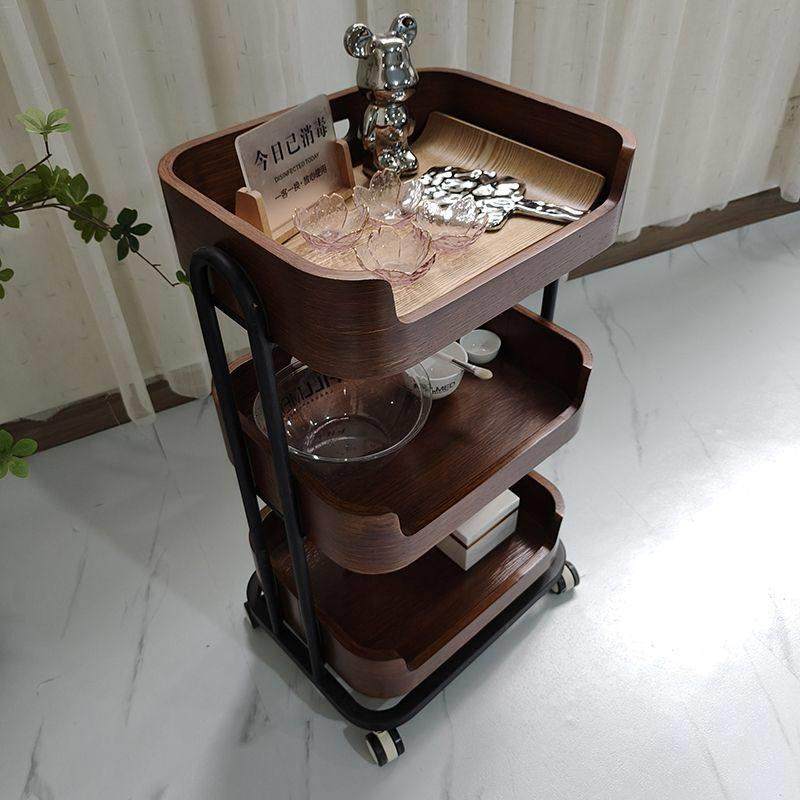 📚 网红实木简约高端三层美容院小推车高档多层移动收纳工具车置物架